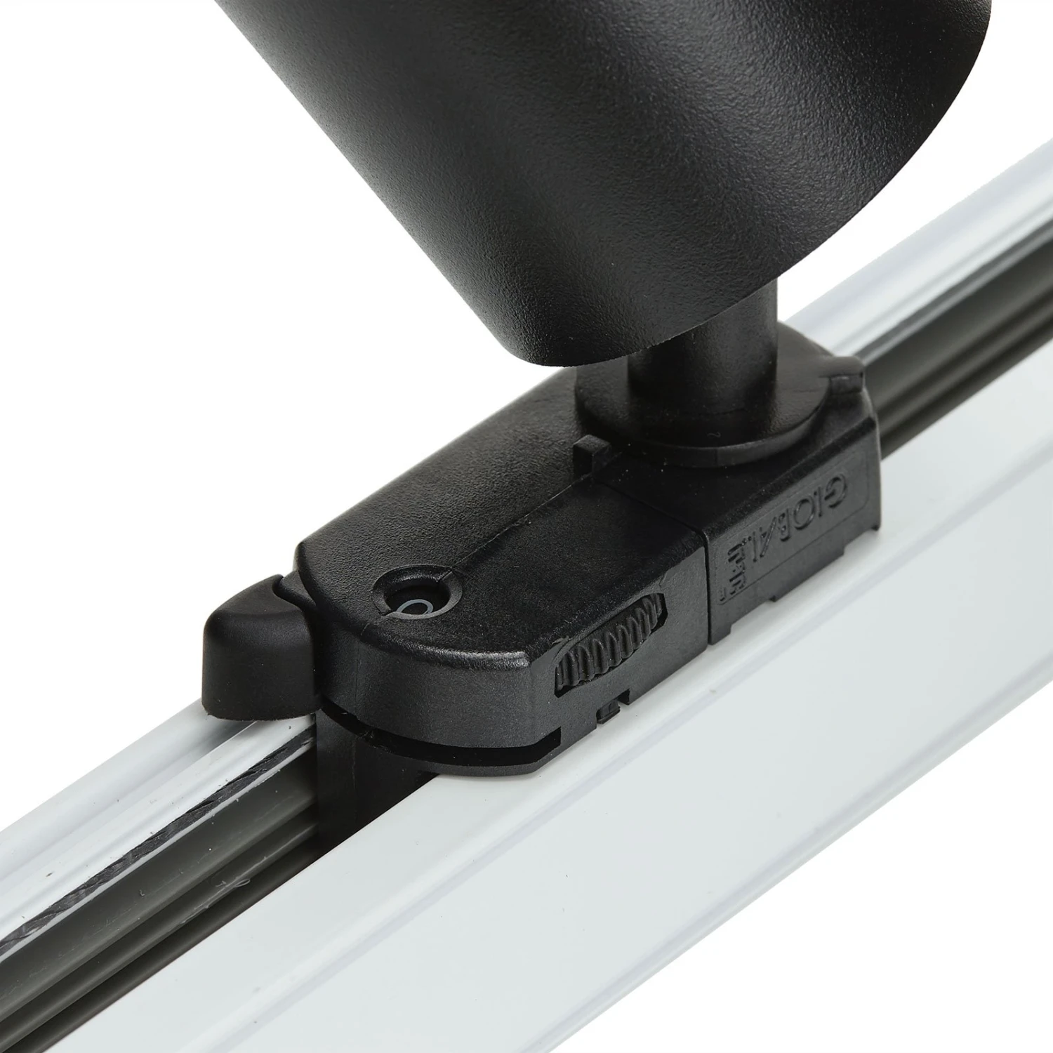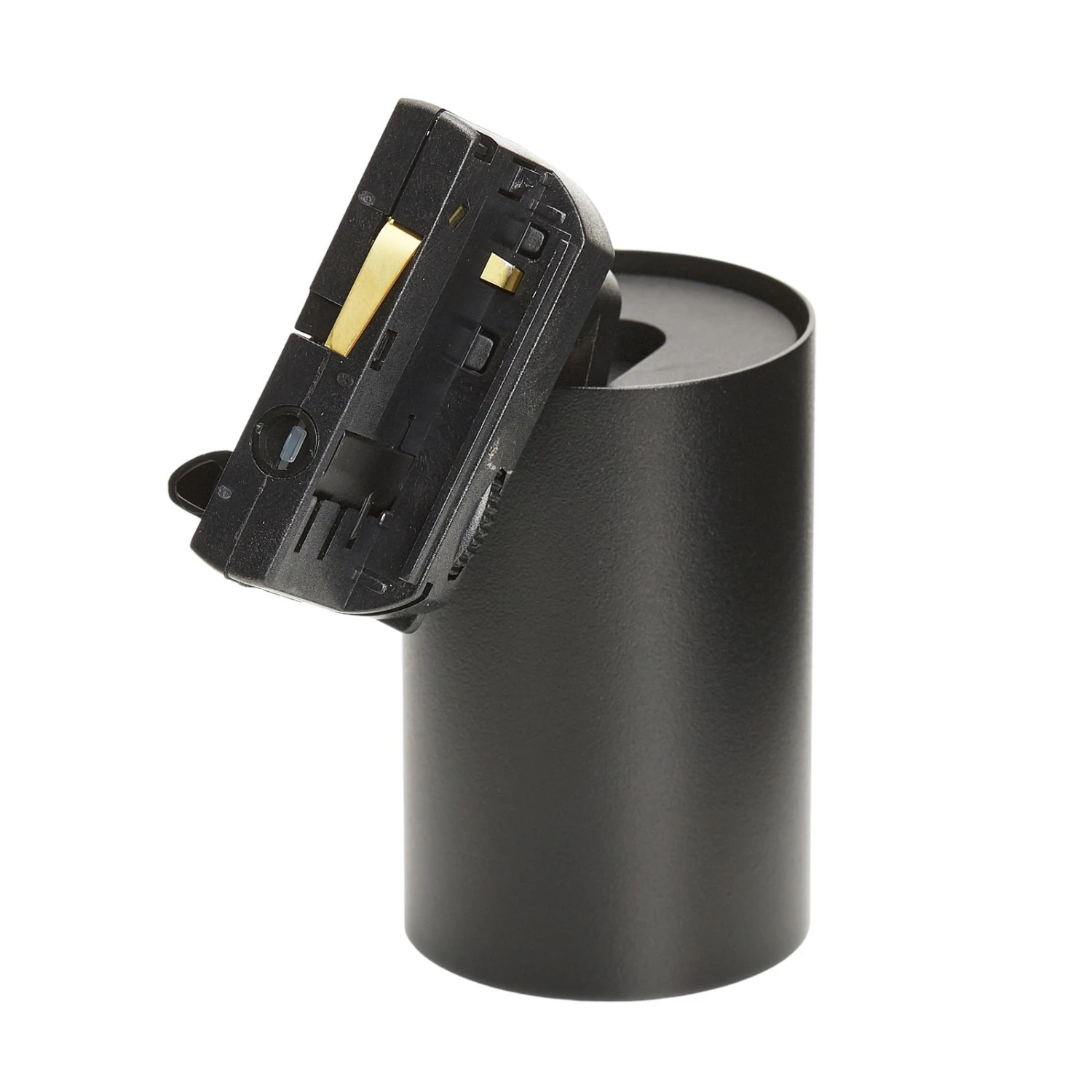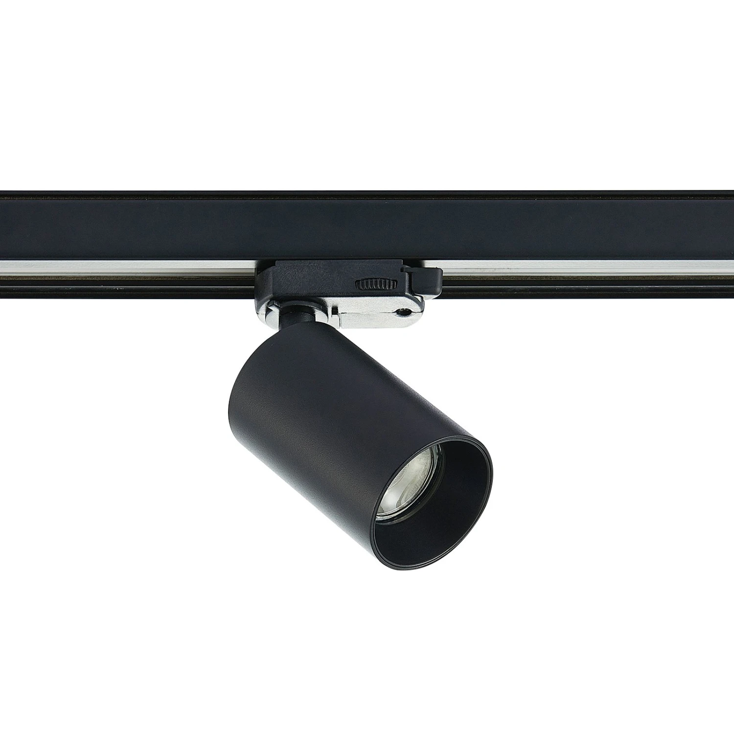 Der Schirm der Leuchte überzeugt durch sein schlichtes Design, das die Leichtigkeit des Aluminiums mit der vollen schwarzen Farbgebung zu einem geradlinigen Gesamtbild vereint. Der Strahler ist kompatibel mit den gängigen Schienensystemen. Außerdem kann die Lampe flexibel gedreht und ausgerichtet und somit der Lichtfall individuell gelenkt werden. In unaufgeregter und eleganter Art und Weise sorgt sie so für eine abgerundete und zielgerichtete Raumbeleuchtung.