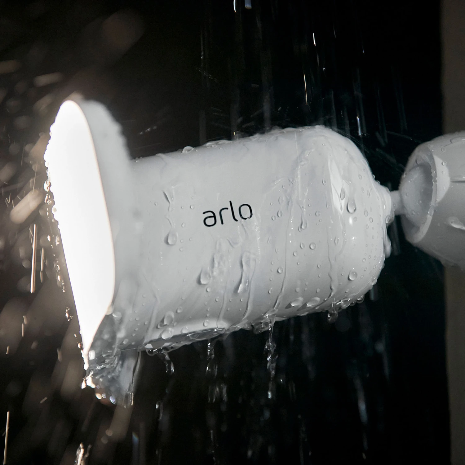 Leistungsstarke Arlo Pro 3 Flutlichtkamera mit wiederaufladarem Akku