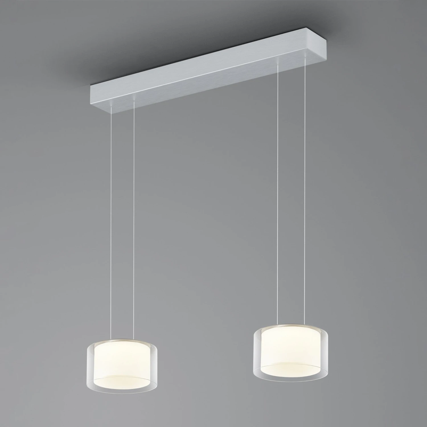 Höhenverstellbar im Betrieb: Die in Deutschland gefertigte LED-Hängeleuchte Grand Clear mit integriertem Dimmer, zweiflammig