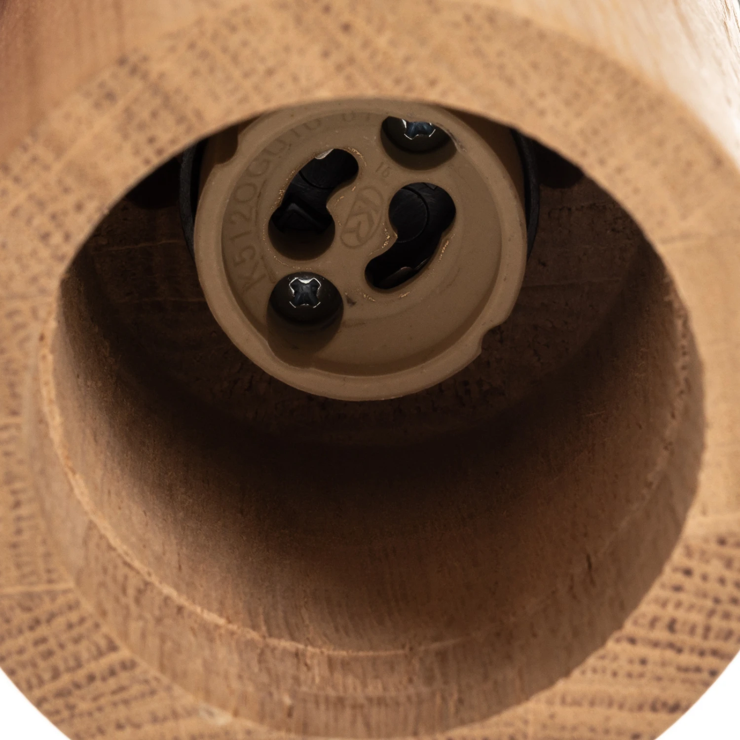 Das Licht gibt Plain punktuell nach unten ab und eignet sich beispielsweise zur Verwendung im Flurbereich sowie im Schlaf- oder Wohnzimmer. Durch ihre dezente Gestaltung kann sie außerdem auch im gastronomischen Bereich genutzt werden Die Eichenholzelemente verleihen der Umgebung eine natürliche Note.