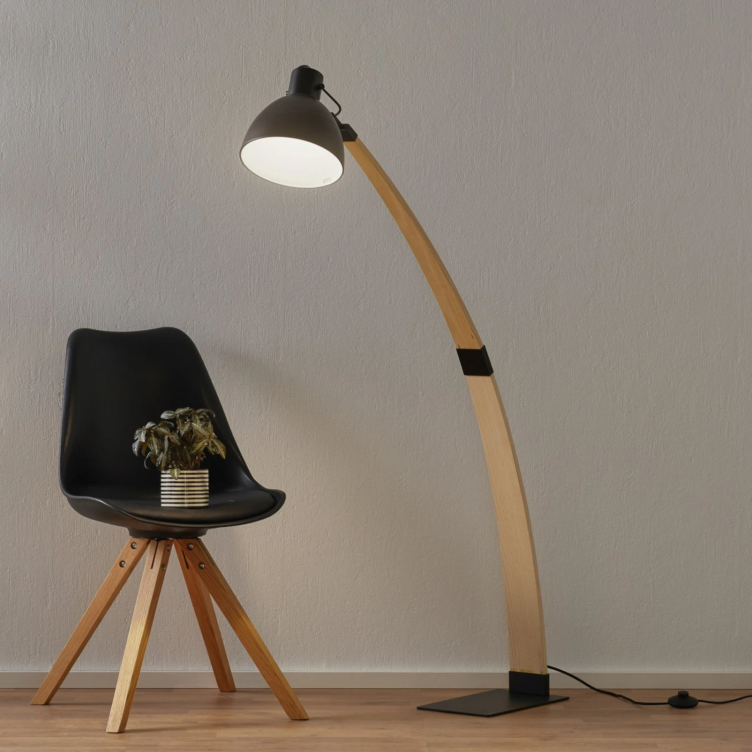 Beim Anblick der Stehleuchte Curf werden sofort Assoziationen zu Leichtigkeit und Frische geweckt. Das Design der Leuchte ist grazil und durch den Körper aus hellem Holz wirkt sie natürlich und naturverbunden. Lampenschirm, Fuß und das mittig platzierte Highlight aus Metall verleihen der Leuchte Modernität. Der Lampenschirm hat eine angenehme Größe ohne aufdringlich zu wirken.
