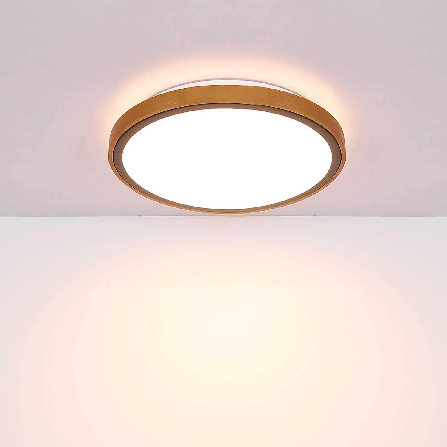 Runde LED-Deckenleuchte Bruno mit Holzrahmen, Lichtfarbe wählbar