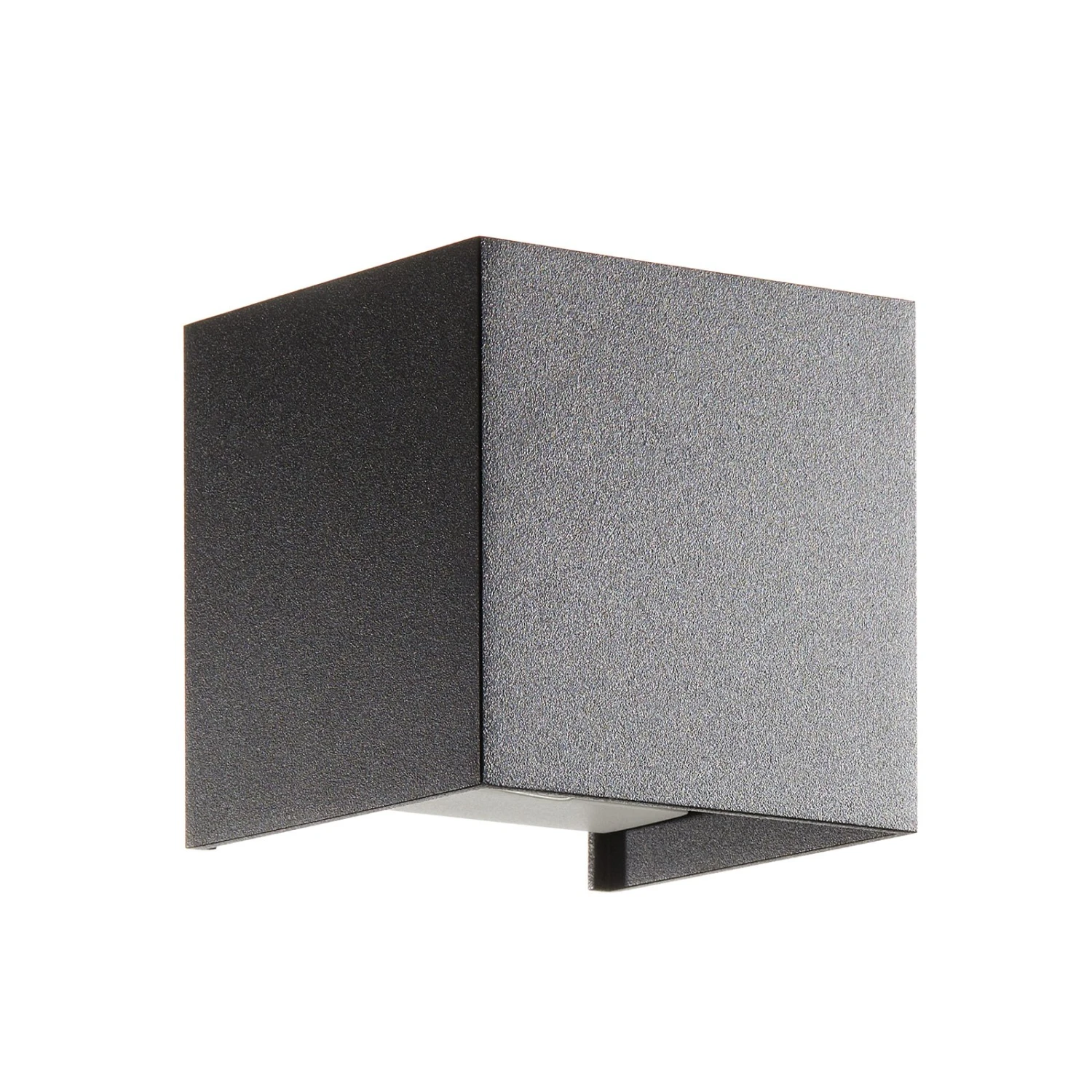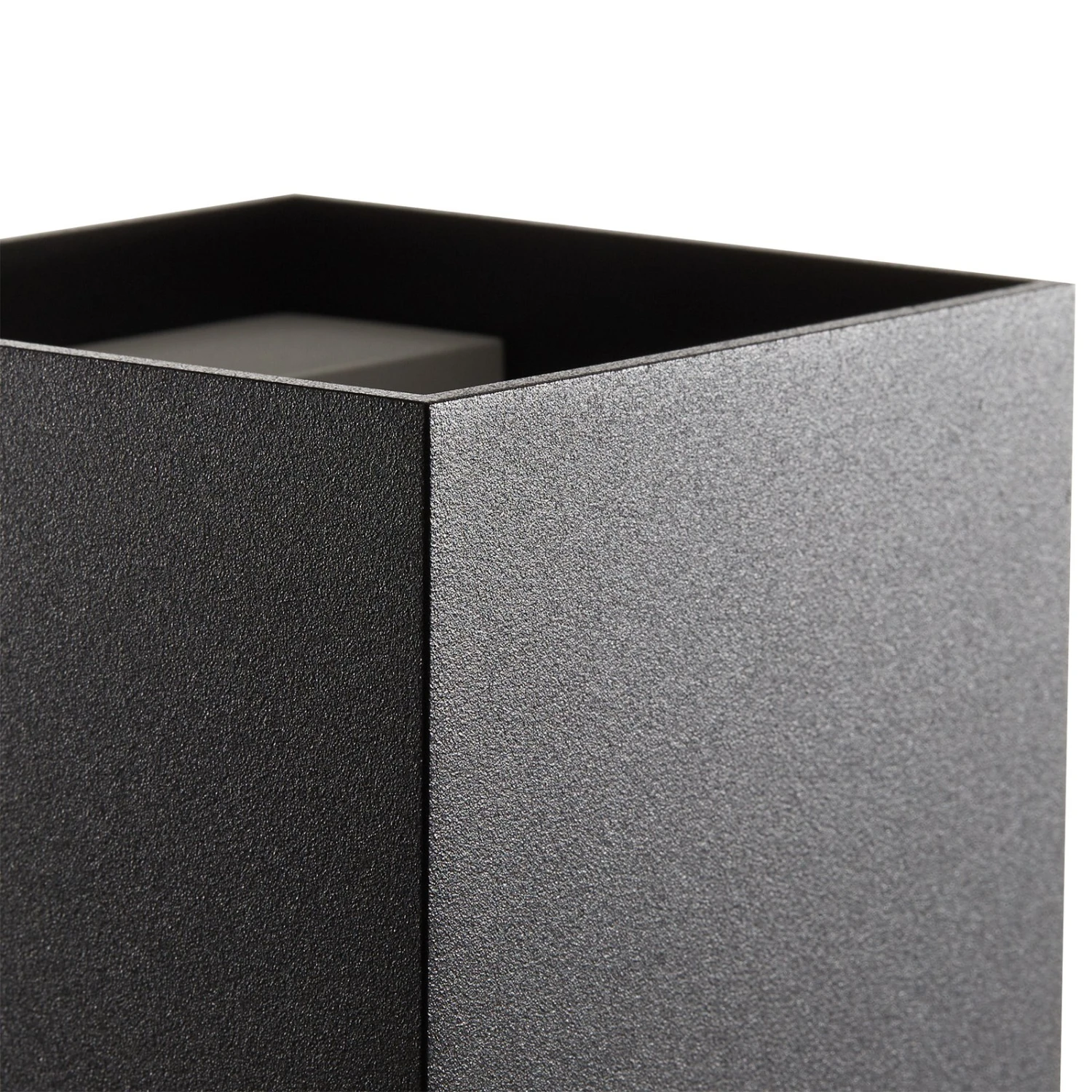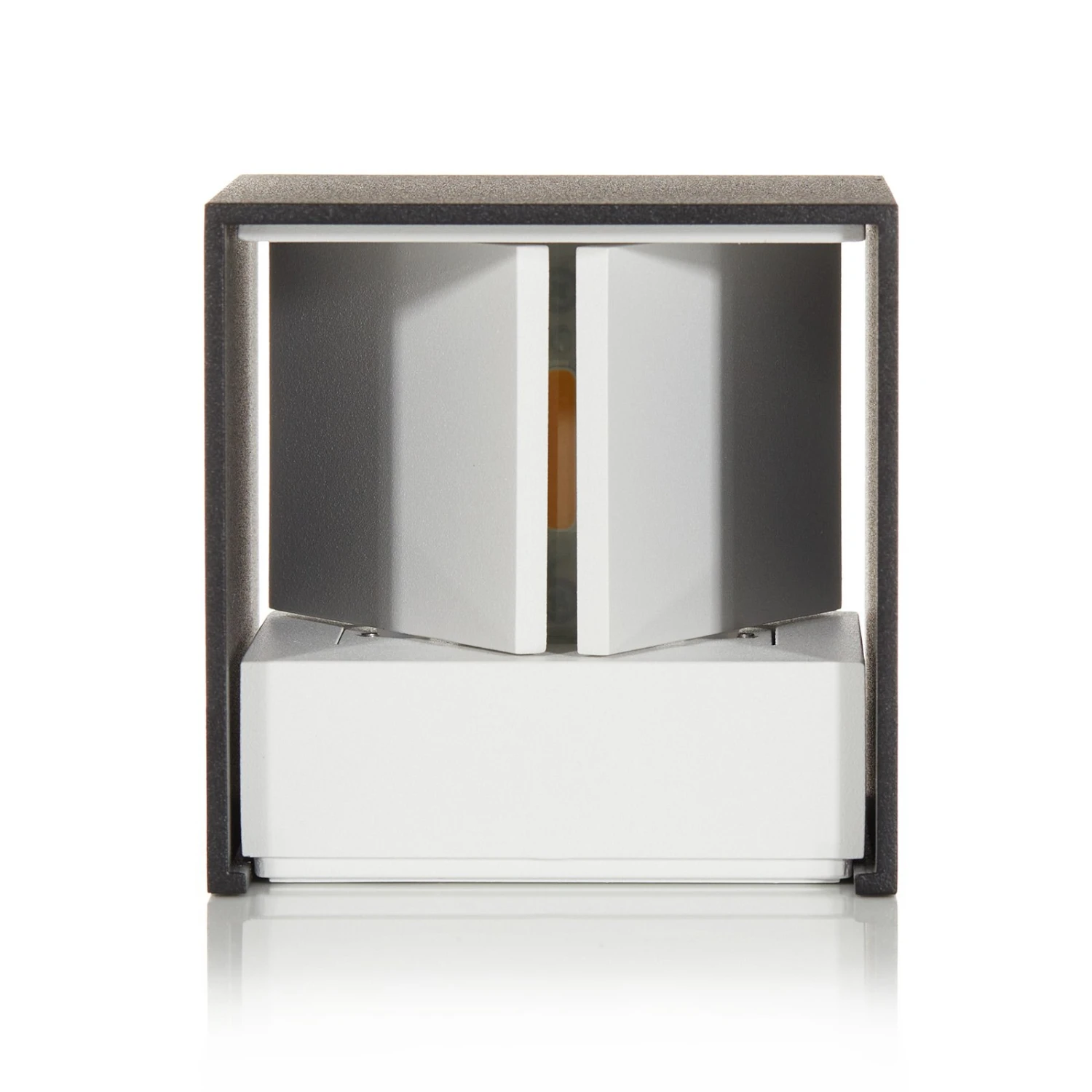 Eine Beleuchtung für den Außenbereich sollte nicht nur eine große Fläche anstrahlen. Auch Lichtkunst ist überaus attraktiv und verspricht eine außergewöhnliche Wirkung für den Außenbereich. Denn das Licht fällt aus dieser unscheinbaren Außenwandleuchte aus Aluminium nicht nur in eine Richtung. Ein schmaler Lichtstrahl fällt aus der quaderförmigen Leuchte nach oben und ein weit gefächerter Lichtstrahl erhellt den unteren Bereich. Hierdurch scheint die Leuchte optimal, um etwa den Türbereich zu erleuchten. In der Farbe Graphit wirkt das Außenlicht außerdem dezent.