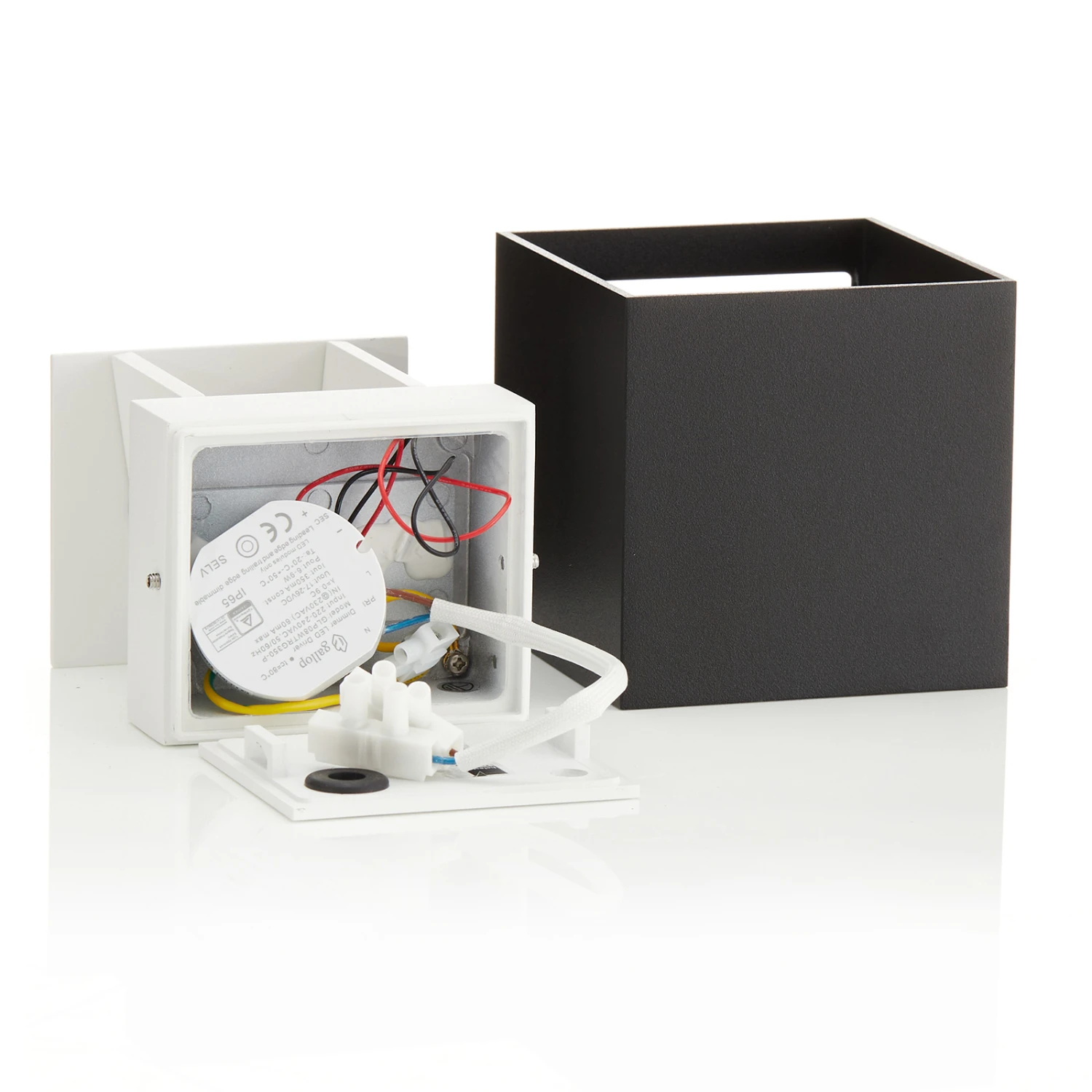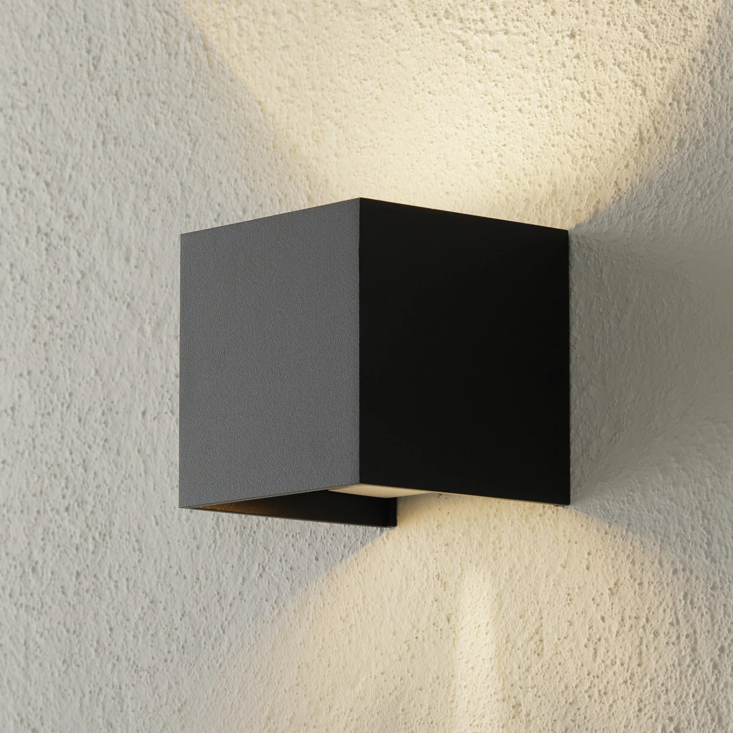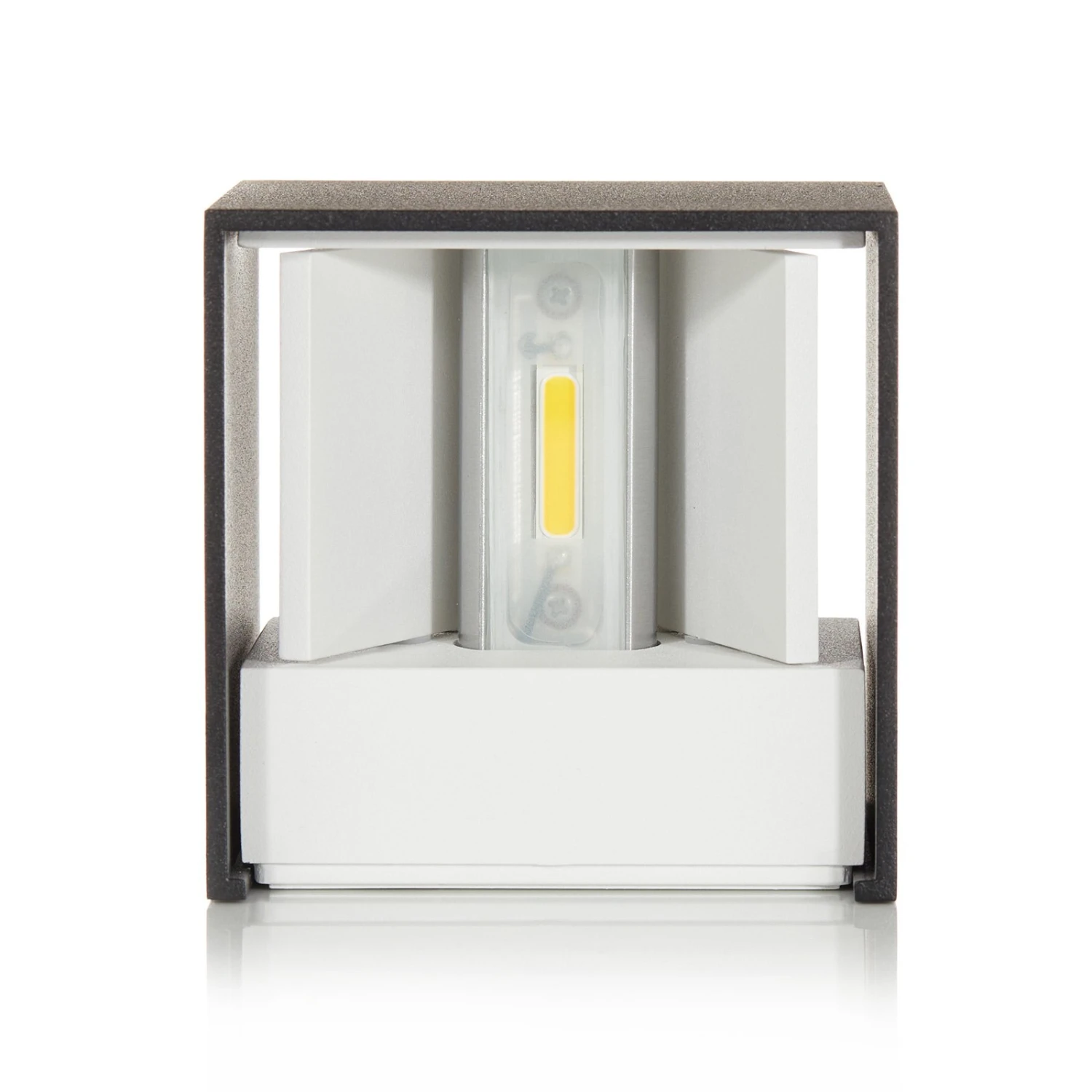 Eine Beleuchtung für den Außenbereich sollte nicht nur eine große Fläche anstrahlen. Auch Lichtkunst ist überaus attraktiv und verspricht eine außergewöhnliche Wirkung für den Außenbereich. Denn das Licht fällt aus dieser unscheinbaren Außenwandleuchte aus Aluminium nicht nur in eine Richtung. Ein schmaler Lichtstrahl fällt aus der quaderförmigen Leuchte nach oben und ein weit gefächerter Lichtstrahl erhellt den unteren Bereich. Hierdurch scheint die Leuchte optimal, um etwa den Türbereich zu erleuchten. In der Farbe Graphit wirkt das Außenlicht außerdem dezent.