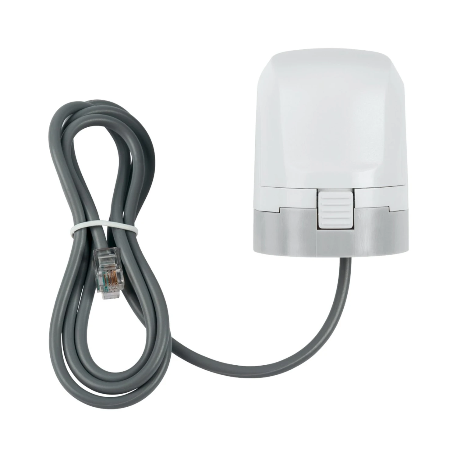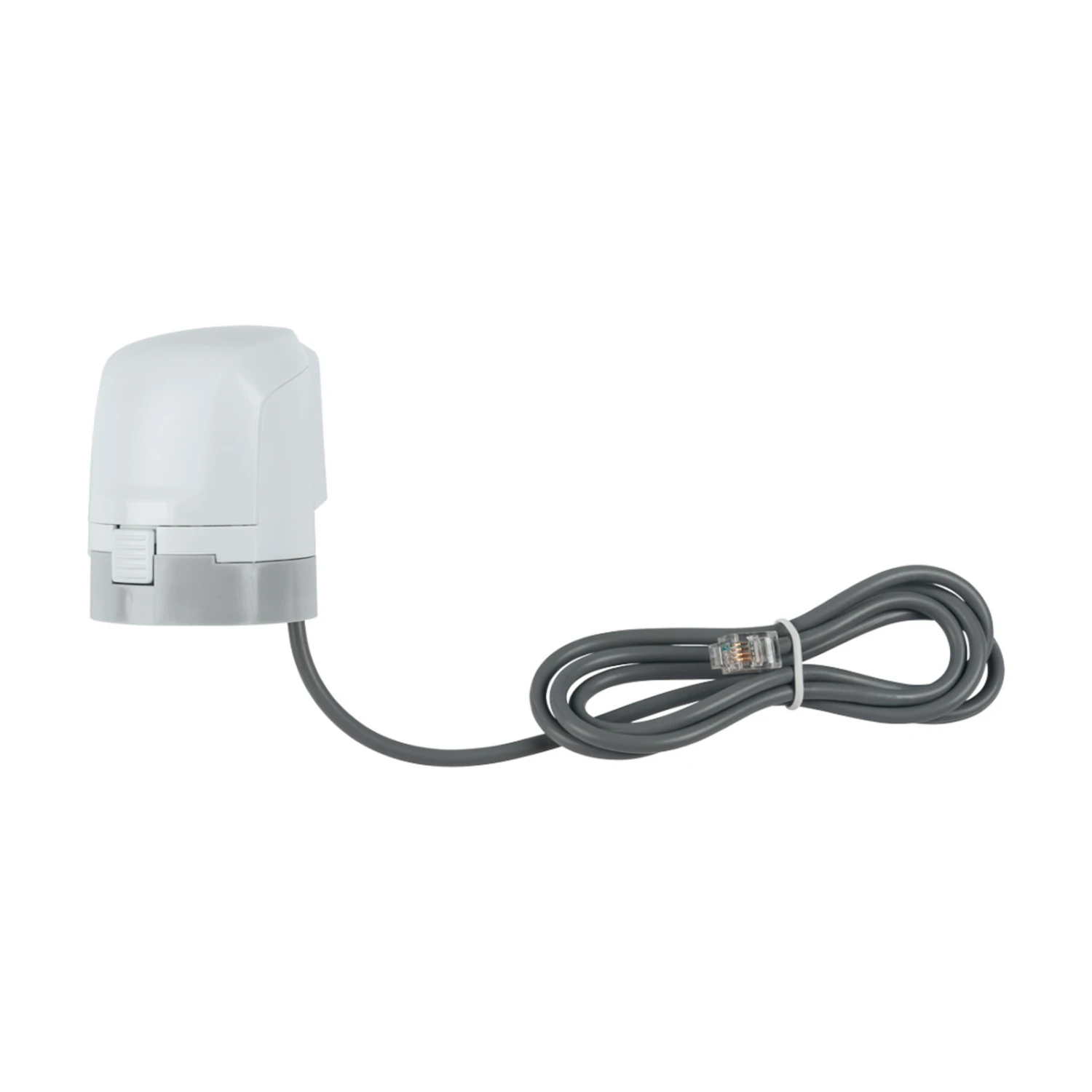 Dieser motorische Stellantrieb wird auf dem Gewinde der Ventilklappe der Fußbodenheizung montiert und mit dem Steckverbinder des Kabels an den zugehörigen Ausgang des Fußbodenheizungsaktors angeschlossen. Der Stellantrieb ermöglicht eine exakte Regulierung der Durchflussmenge an der Ventilklappe, sodass die Auslastung des Heizkessels effizient auf den Bedarf abgestimmt wird und sich die Temperatur der Fußbodenheizung präzise steuern lässt.