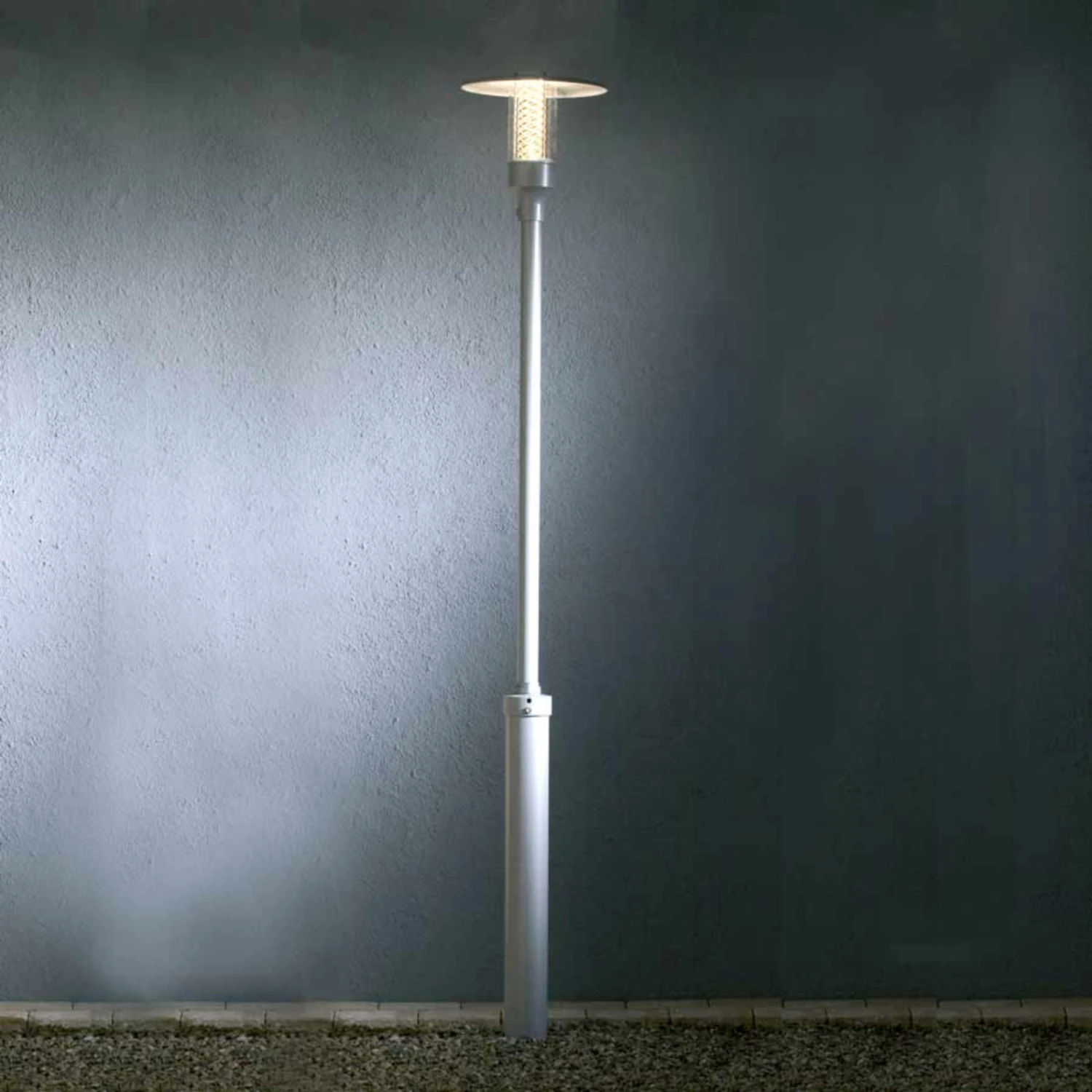NOVA ist eine klassische Halogen-Mastleuchte aus Aluminium. Das Material garantiert 25 Jahre Korrosionsschutz. Die Leuchten dieser Serie werden in Europa handgefertigt.