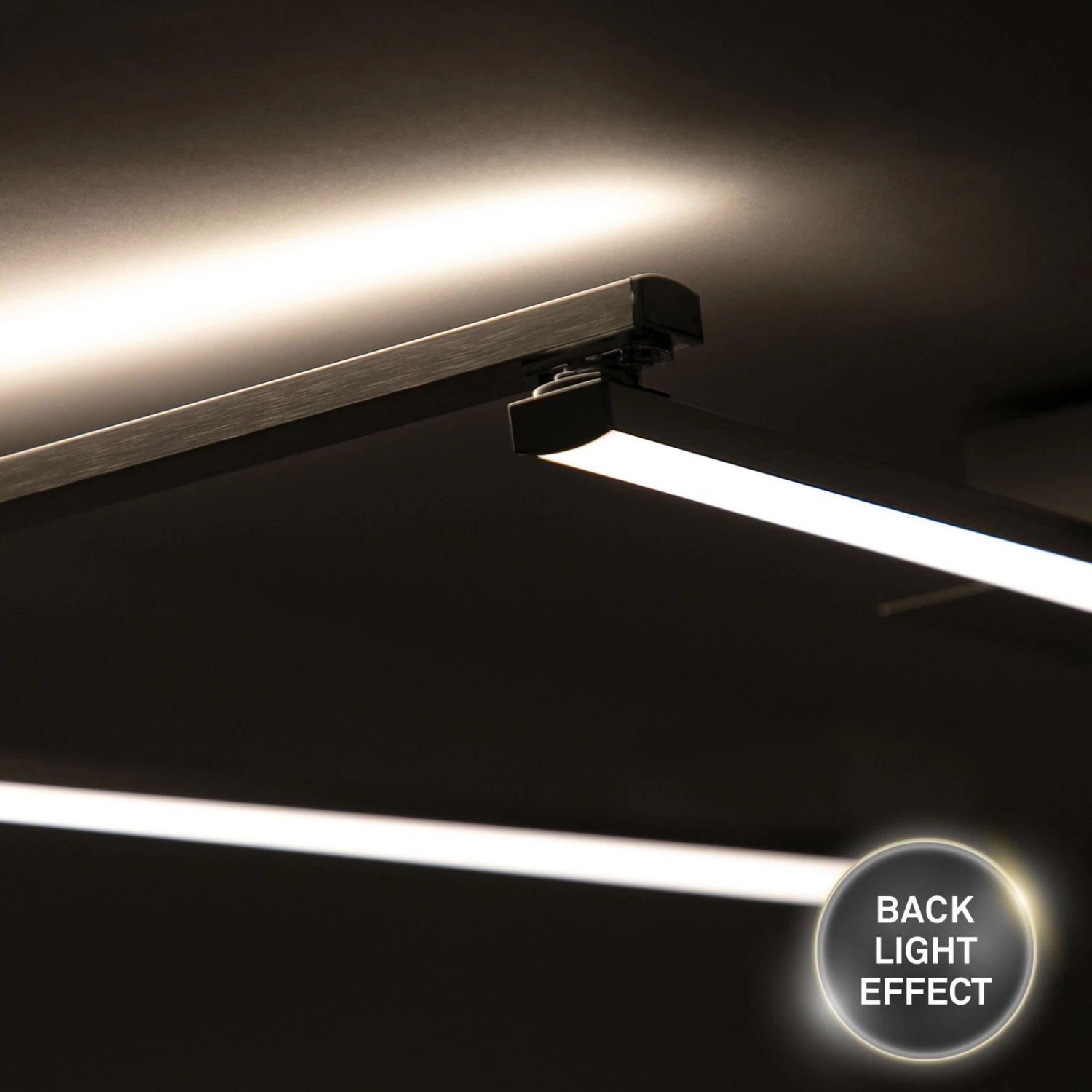 Die LED-Deckenleuchte B smart besteht aus schmalen, länglichen Elementen, die individuell justiert werden können. So lässt sich die Form der Leuchte bedarfsgerecht einstellen und auf die Umgebung anpassen. Das Licht wird hauptsächlich nach unten abgegeben, strahlt aber zugleich zu den Seiten und Richtung Decke wodurch ein schöner Backlight-Effekt entsteht. B smart kann flexibel in der Wohnumgebung eingesetzt werden, beispielsweise als Lichtspender für den Flurbereich sowie das Wohn- oder Schlafzimmer.