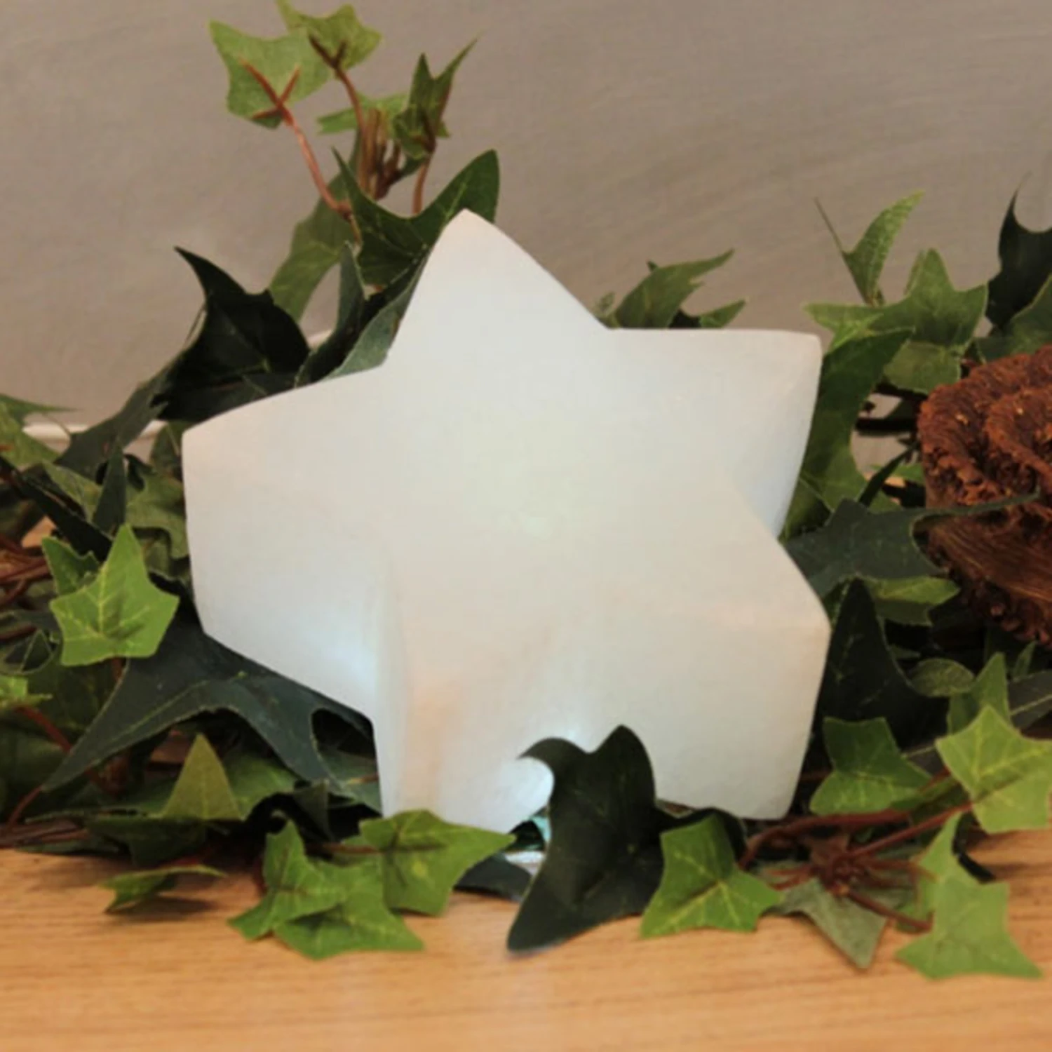 Auf einer Fensterbank, auf einem Beistelltisch, auf einem Regal oder auf einem Sideboard ist der weiße, aus Salzkristallstein bestehende Stern eine schöne Dekoration, die von innen von einer LED beleuchtet wird. Durch die Sternform ist die Salzkristallleuchte auch in der Weihnachtszeit ein schöner Blickfang.