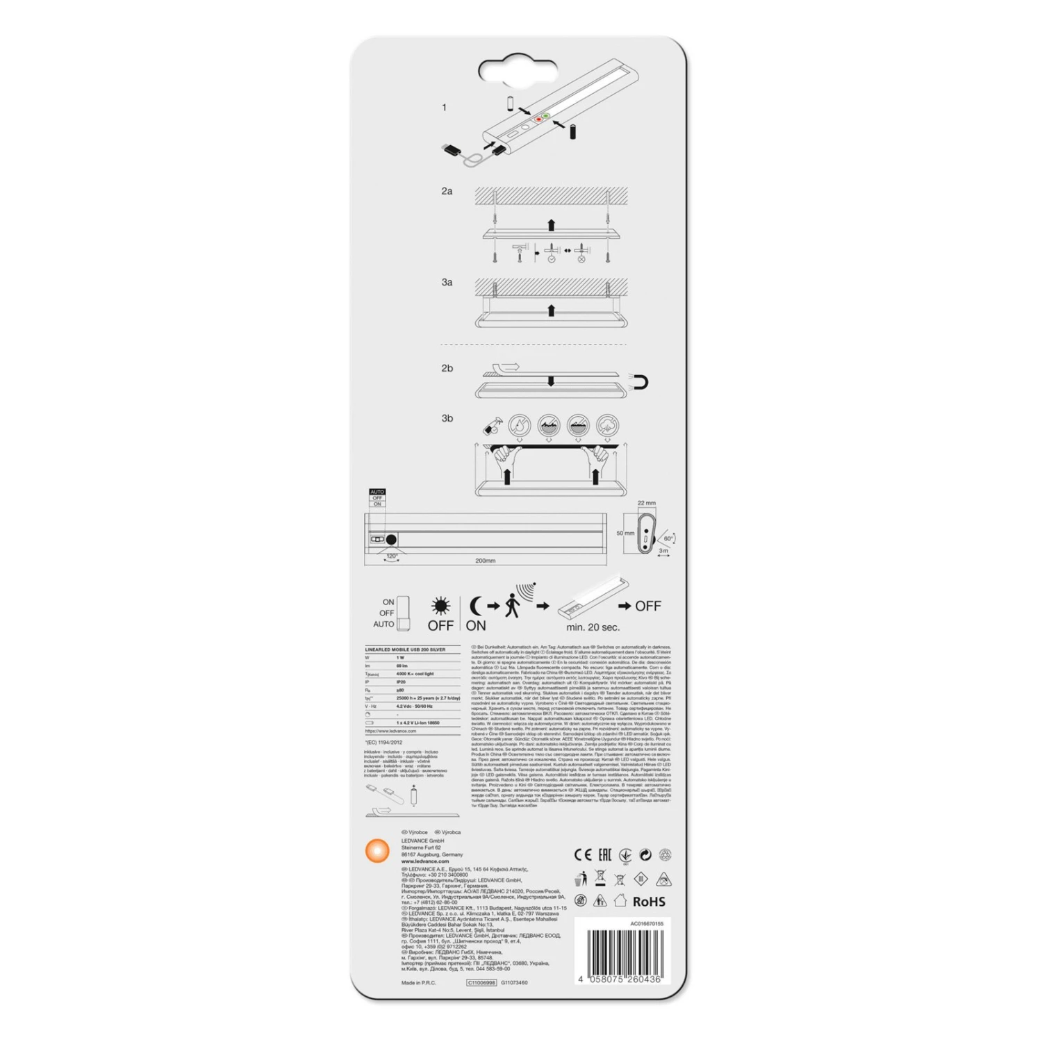 Die Unterbauleuchte Linear Mobile USB ist eine vielseitige Zusatzlichtquelle zum Möbelanbau in Küchenzeilen, Kleiderschränken oder Vorsprüngen. Ihr langer Körper aus silbergrauem Aluminium mit Polycarbonat-Diffusor wird wahlweise verschraubt oder verklebt montiert. Zum Aufladen des Akkus (USB-Kabel liegt bei) kann die Leuchte aus der Halterung entnommen werden.