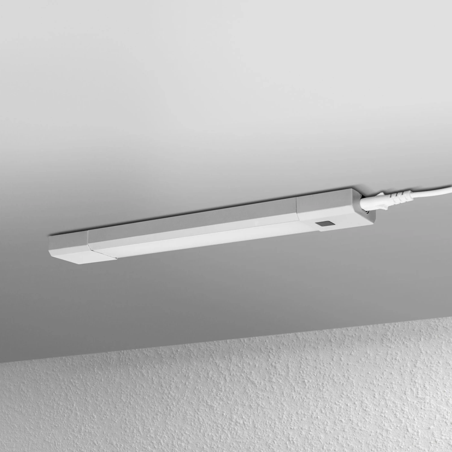 Über den Sweep Sensor lässt sich die Unterschranklampe ohne Berührung an- und ausschalten sowie stufenlos dimmen. Die Lichtstreuung erfolgt äußerst homogen, sodass sich ein ausgeglichenes Lichtkonzept ergibt. Das Gehäuse besteht aus robustem Polycarbonat mit grau-silbernem Finish – Langlebigkeit und Stil sind somit gleichermaßen garantiert.