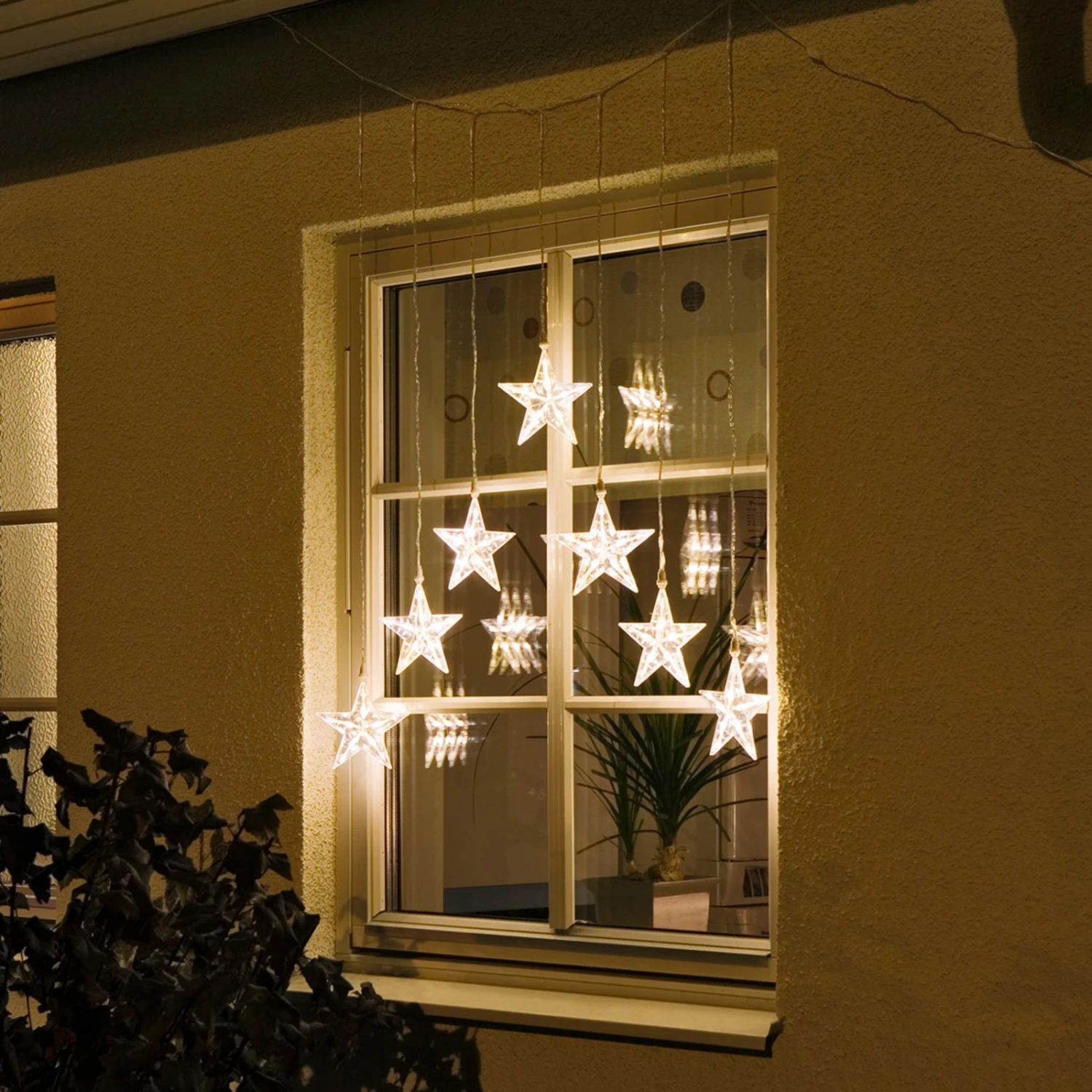 Warmweißer LED Lichtervorhang mit 7 Sternen für den Außenbereich