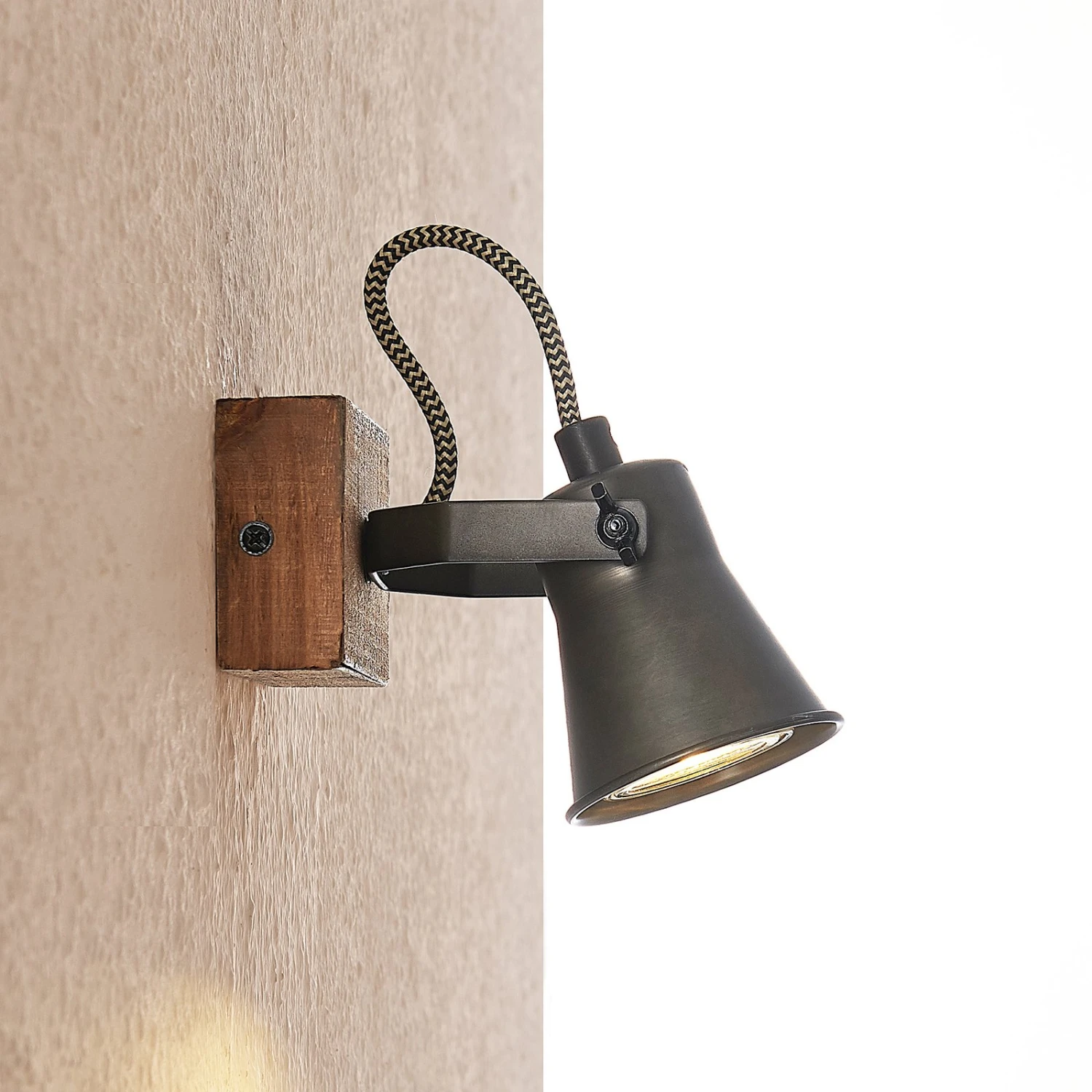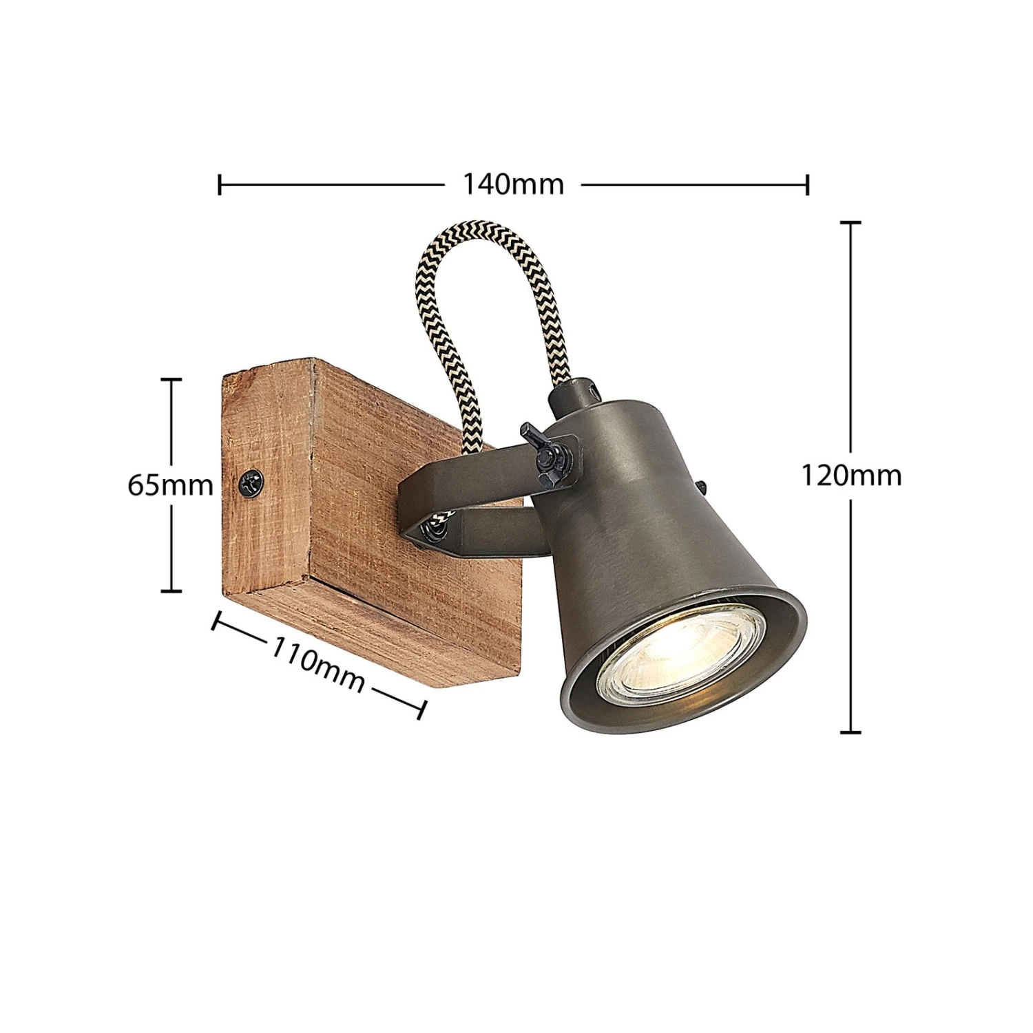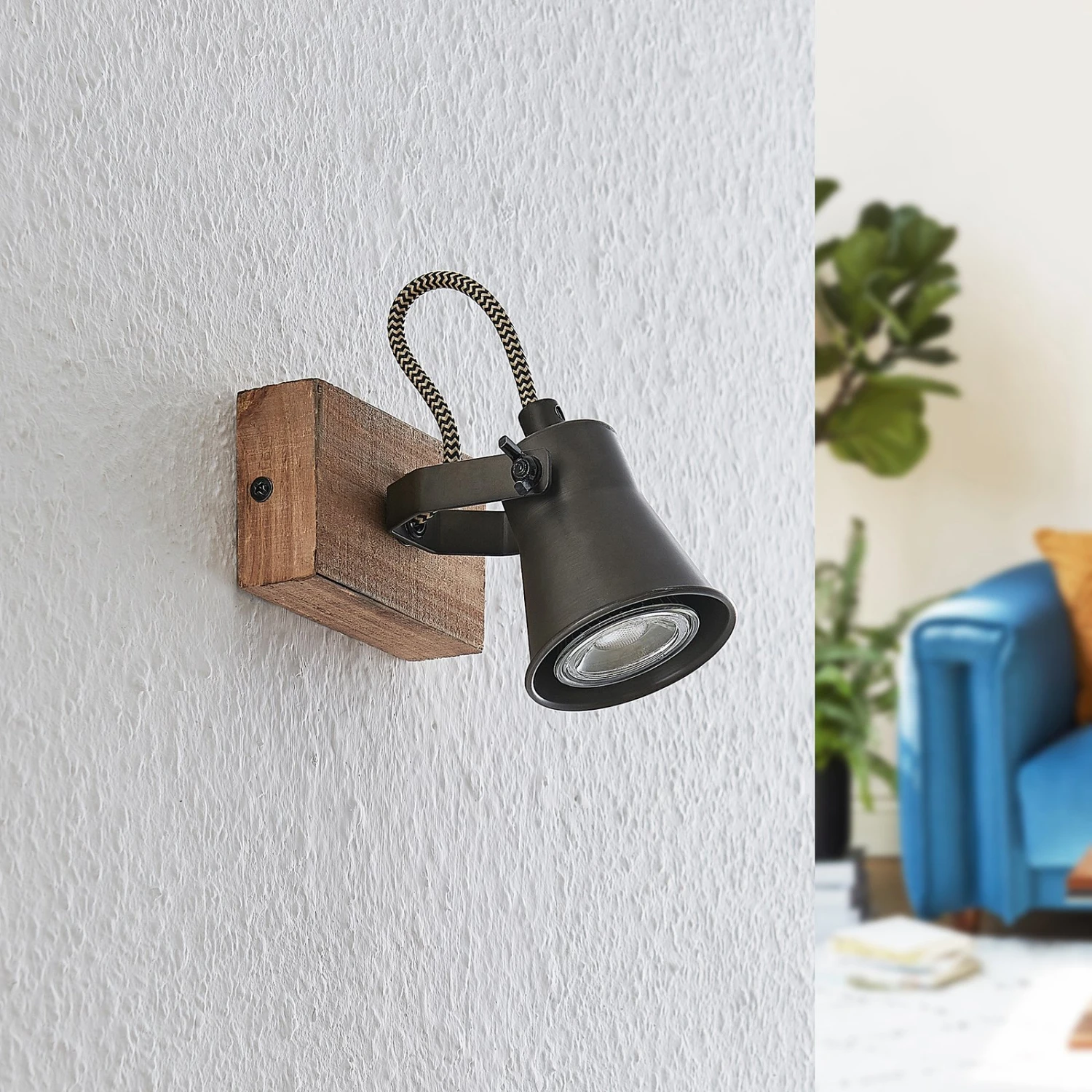 Deckenstrahler Grandesa mit verstellbarem Spot am Holz-Baldachin