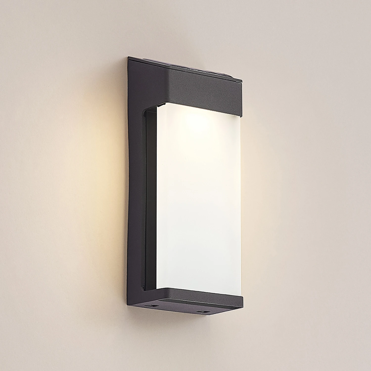 Diese Wandlampe für den Außenbereich ist kastenförmig und nur im oberen Teil etwas geneigt, weil dort das Solarpanel sitzt und der Sonne so das Auftreffen erleichtert. Daher braucht es für den Betrieb der Wandleuchte Kendrik keinen Stromanschluss, es reicht, wenn tagsüber genug Sonnenlicht zur Verfügung steht, damit es in Strom und am Abend in Licht umgewandelt werden kann. Der Rahmen der Solarwandleuchte ist schwarz, der großflächige innere Einsatz hingegen ist weiß und er ermöglicht eine weiche Verteilung des Lichts, das blendfrei austritt. Bei voll aufgeladenem Akku kann die Wandlampe bis zu 15 Stunden leuchten.