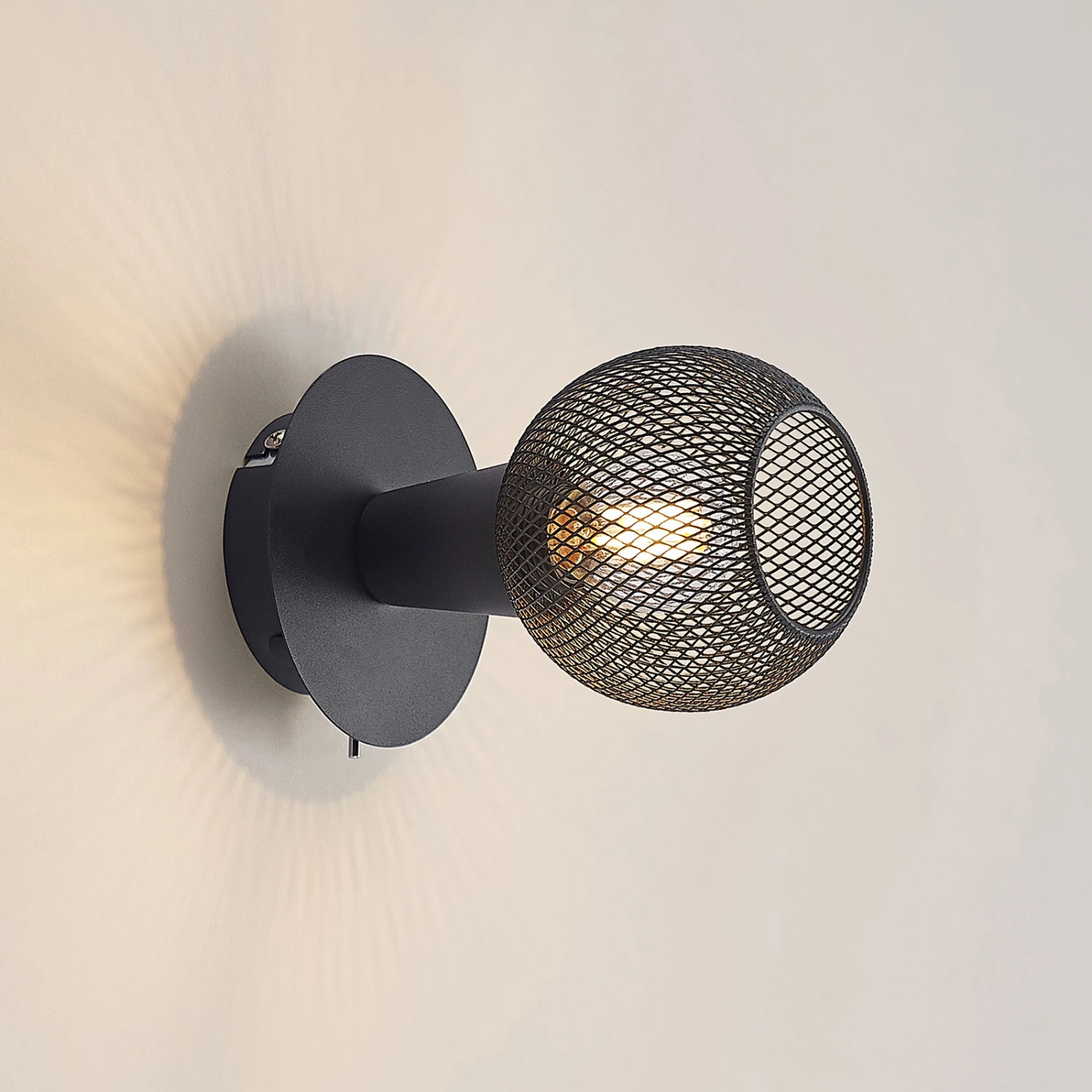 Runder Spot Zerda mit Schalter und schwarzem Schirm in Gitteroptik