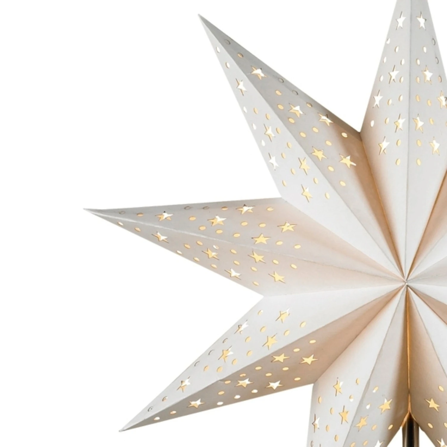 Bezaubernder Weihnachtsstern aus Papier, der für eine tolle Atmosphäre sorgt. Besonders die kleinen sternförmigen Aussparungen und Verzierungen sorgen für wunderschöne Lichtausstrahlungen. So lässt sich eine schöne Weihnachtsstimmung verbreiten und jedes Fenster bekommt eine ganz besondere Note.