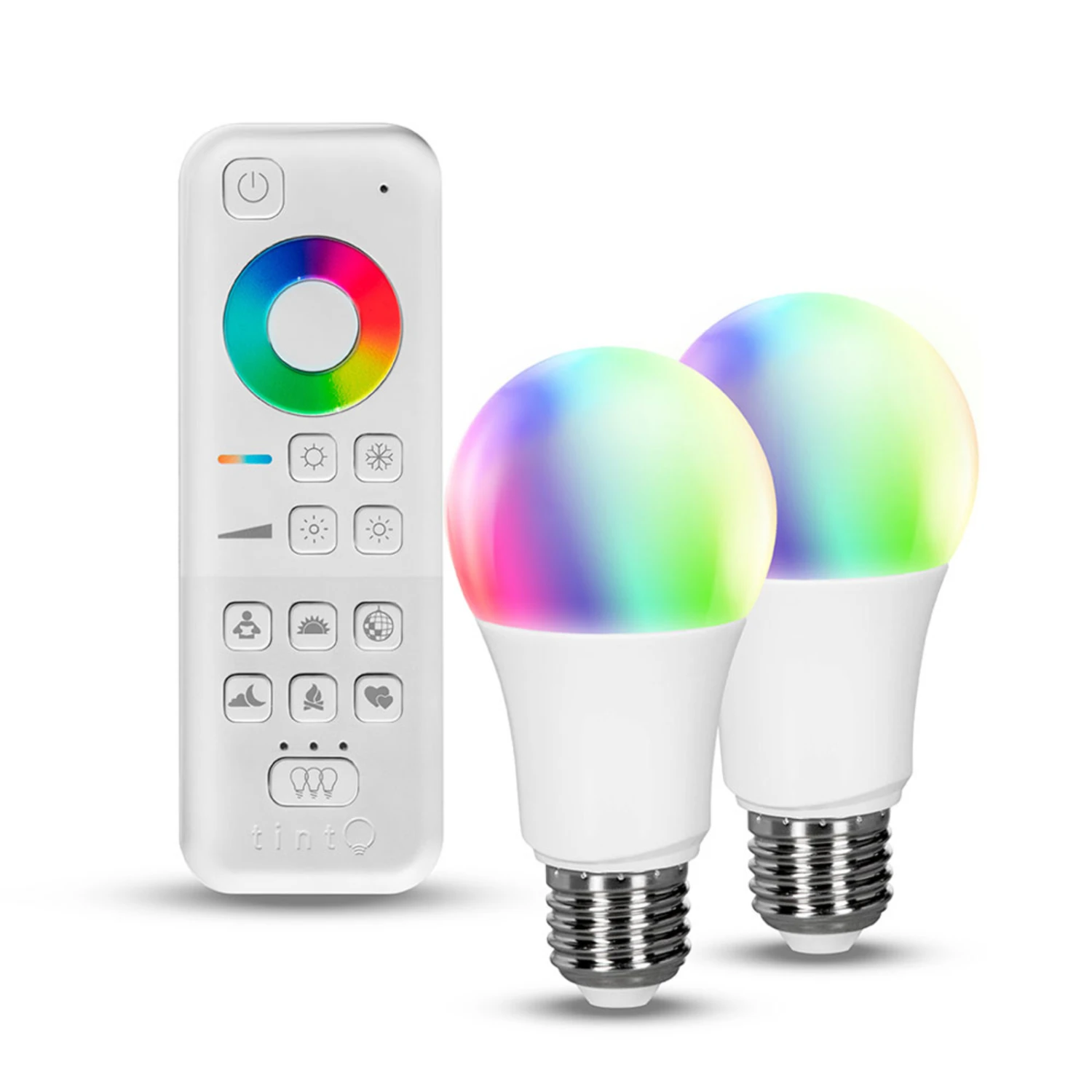 Starter-Set: 2x E27 LED-Lampe tint white+color mit passender Fernbedienung in Weiß