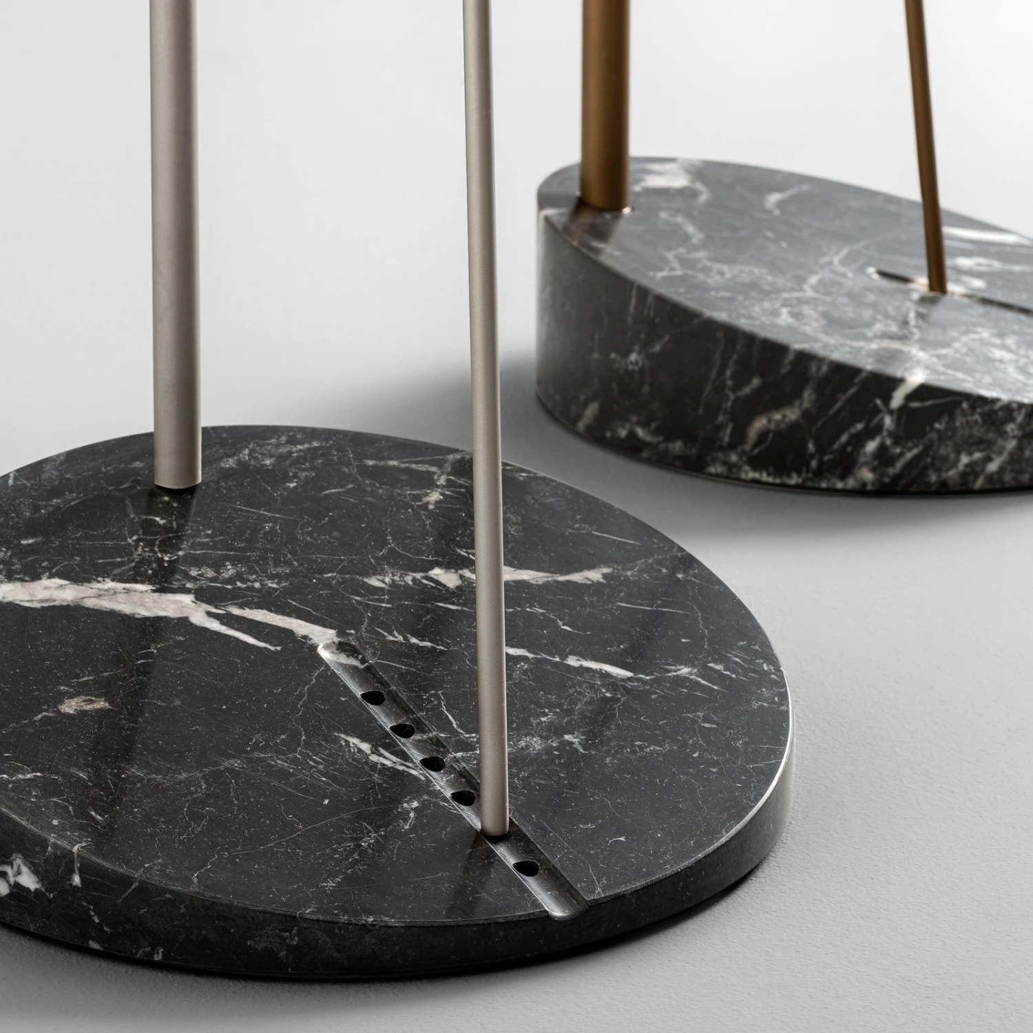 Mit der LED-Stehlampe Boom hat der Designer Marc Sadler eine beeindruckende Leuchtenserie geschaffen. Boom setzt sich zusammen aus einem zylindrischen Lampenschirm aus Aluminium und zwei schlanken Carbonstangen, die auf einem Fuß aus Marmor stehen. In der asymmetrischen Marmorplatte sind mehrere Standpunkte eingearbeitet, sodass die Neigung der Lampe nach Belieben angepasst werden kann.