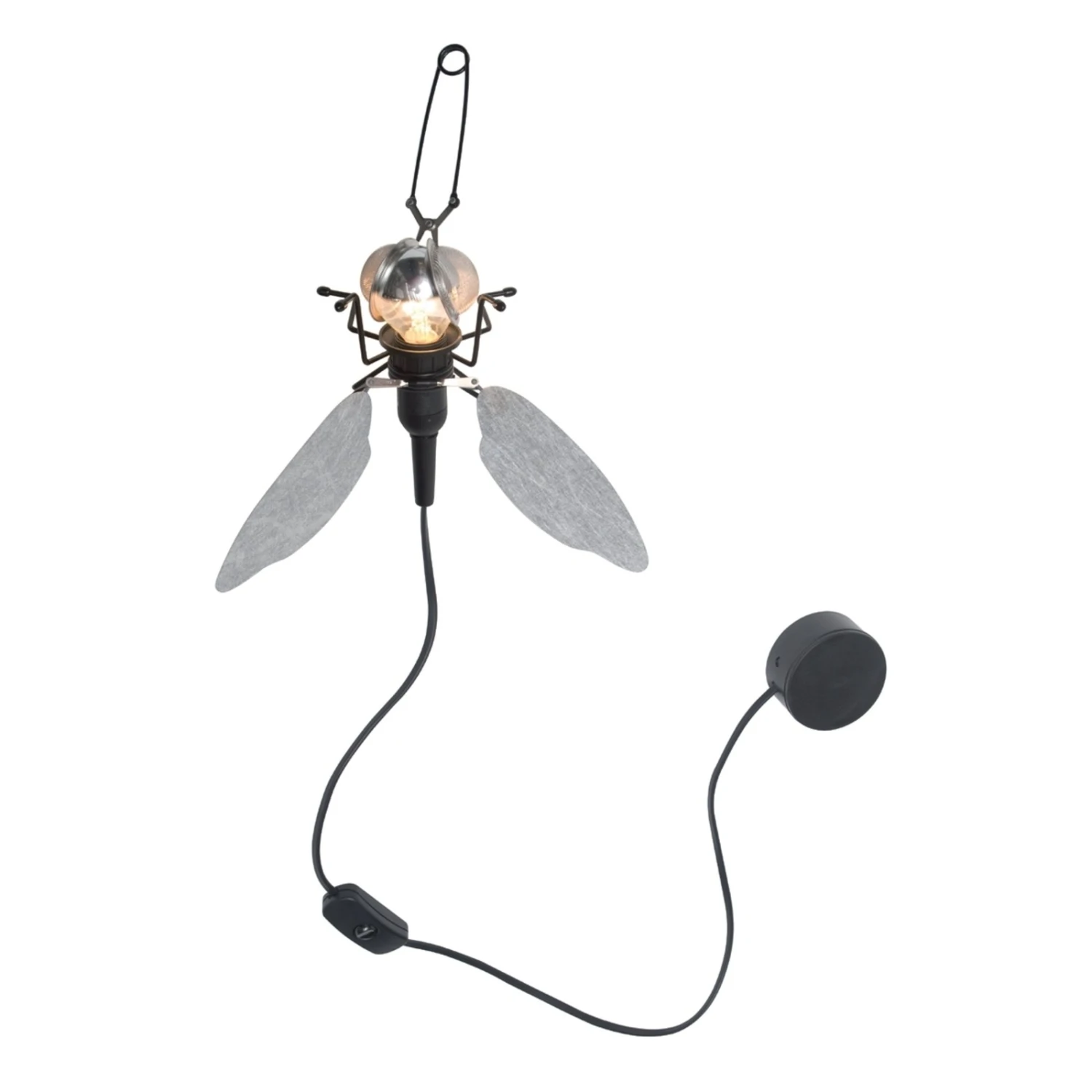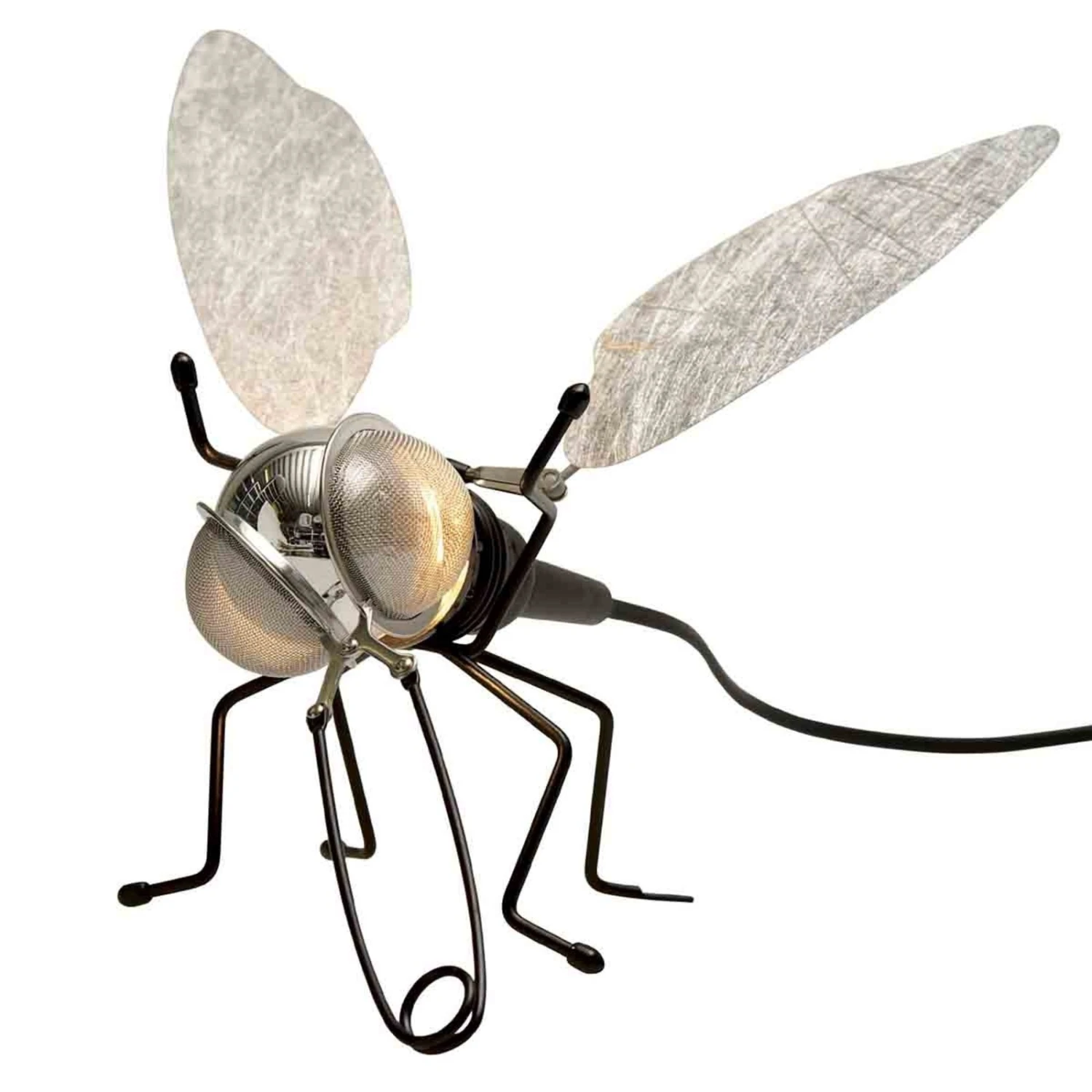 Wer in Sachen Einrichtung und Beleuchtung das Außergewöhnliche liebt, liegt mit FILOU genau richtig. Aus Metall und Kunststoff kreiert, sorgt diese Wandleuchte in Form einer Fliege für behagliches und stimmungsvolles Licht und ist ein absoluter Blickfang, auch im ausgeschalteten Zustand. Eine Öse am linken Hinterbein bietet jeweils die Möglichkeit, die Fliege an beliebiger Stelle zu montieren. Als Augen und Rüssel dient ein handelsübliches Teesieb – eine tolle Idee, die das kreative Design gelungen abrundet. Die Kabellänge inklusive Schnurschalter beträgt 1 m.