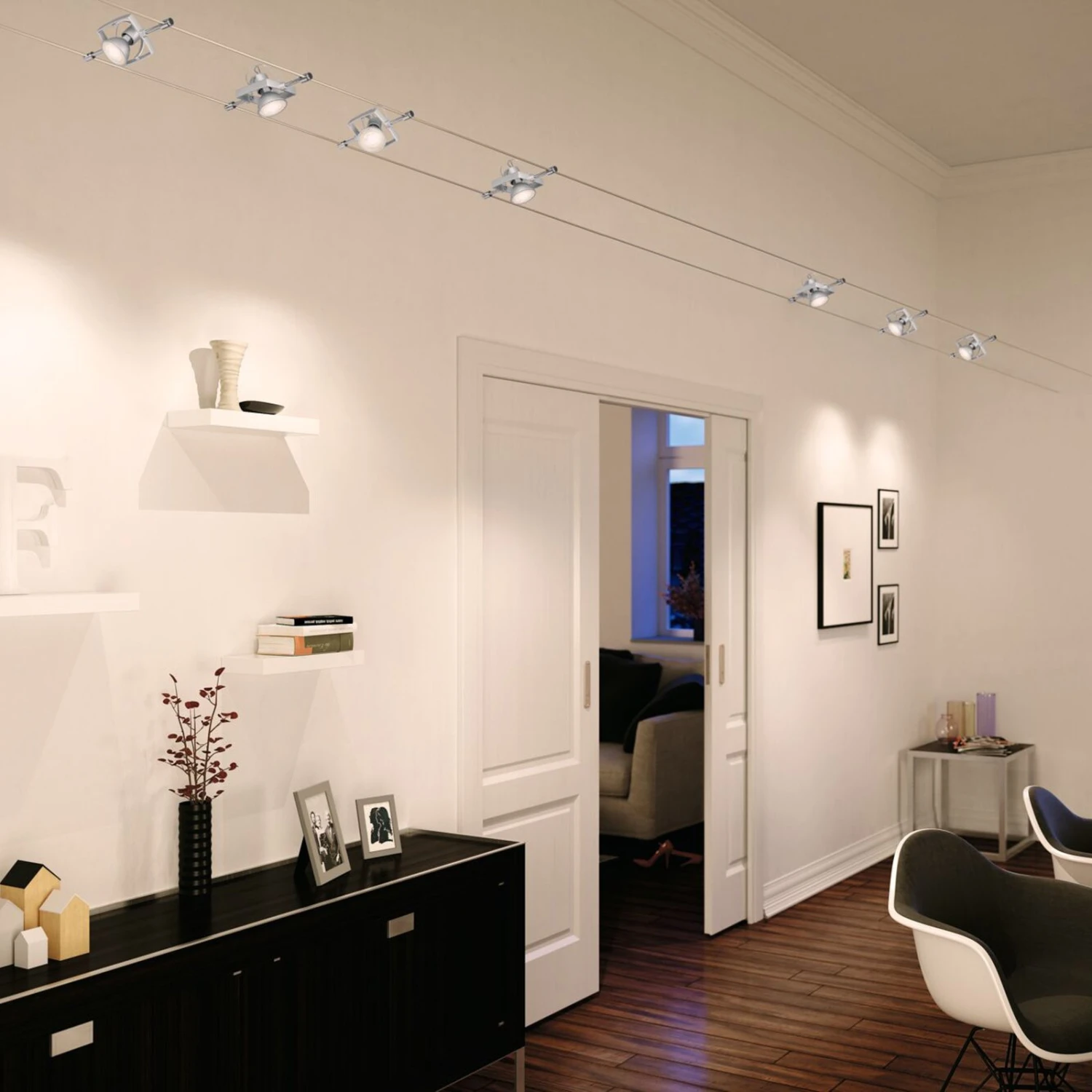 Als anschlussfertiges Komplettset wird das Seilsystem Wire Mac II geliefert. Es besteht aus einem 10 m langen Seil, sieben Leuchten mit GU5,3-Fassung, die sich beliebig am Seil positionieren lassen, einem Trafo sowie Montagematerial. Das Seilsystem bietet sich zur Beleuchtung großer Räume oder langer Flure an und kann nicht nur an der Decke, sondern auch an der Wand oder an der Dachschräge befestigt werden.