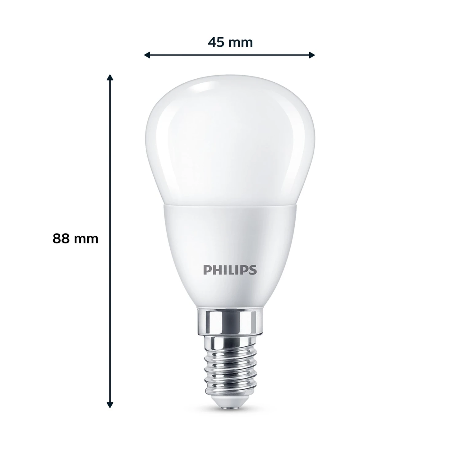 Diese LED-Tropfenlampe P45 mit E14-Sockel ersetzt herkömmliche Glühlampen mit 40W. Durch den matten Kolben wird das warmweiße Licht homogen zu allen Seiten ausgestrahlt.