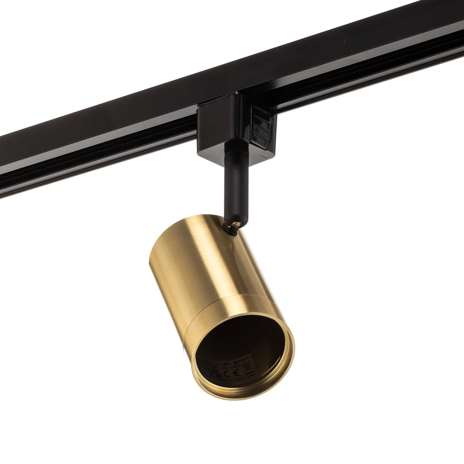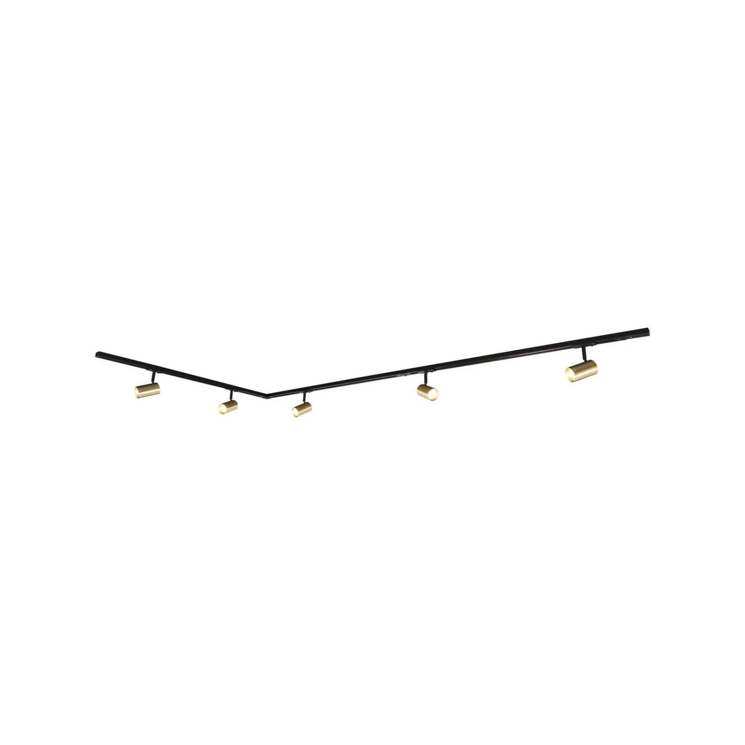 Fünfflammiges Schienensystem Jorell mit 1-Phasen-Stromschienen und goldenen Schirmen in Zylinderform