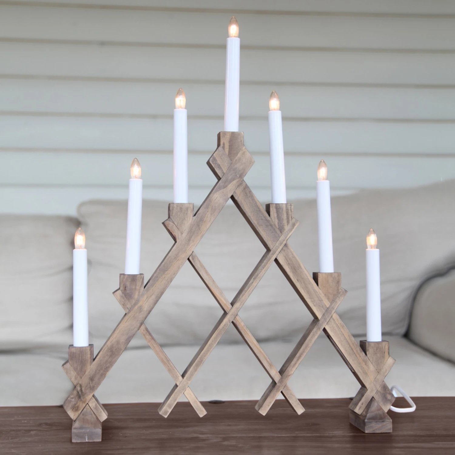 Hoher Kerzenleuchter Rut aus Holz – siebenflammig