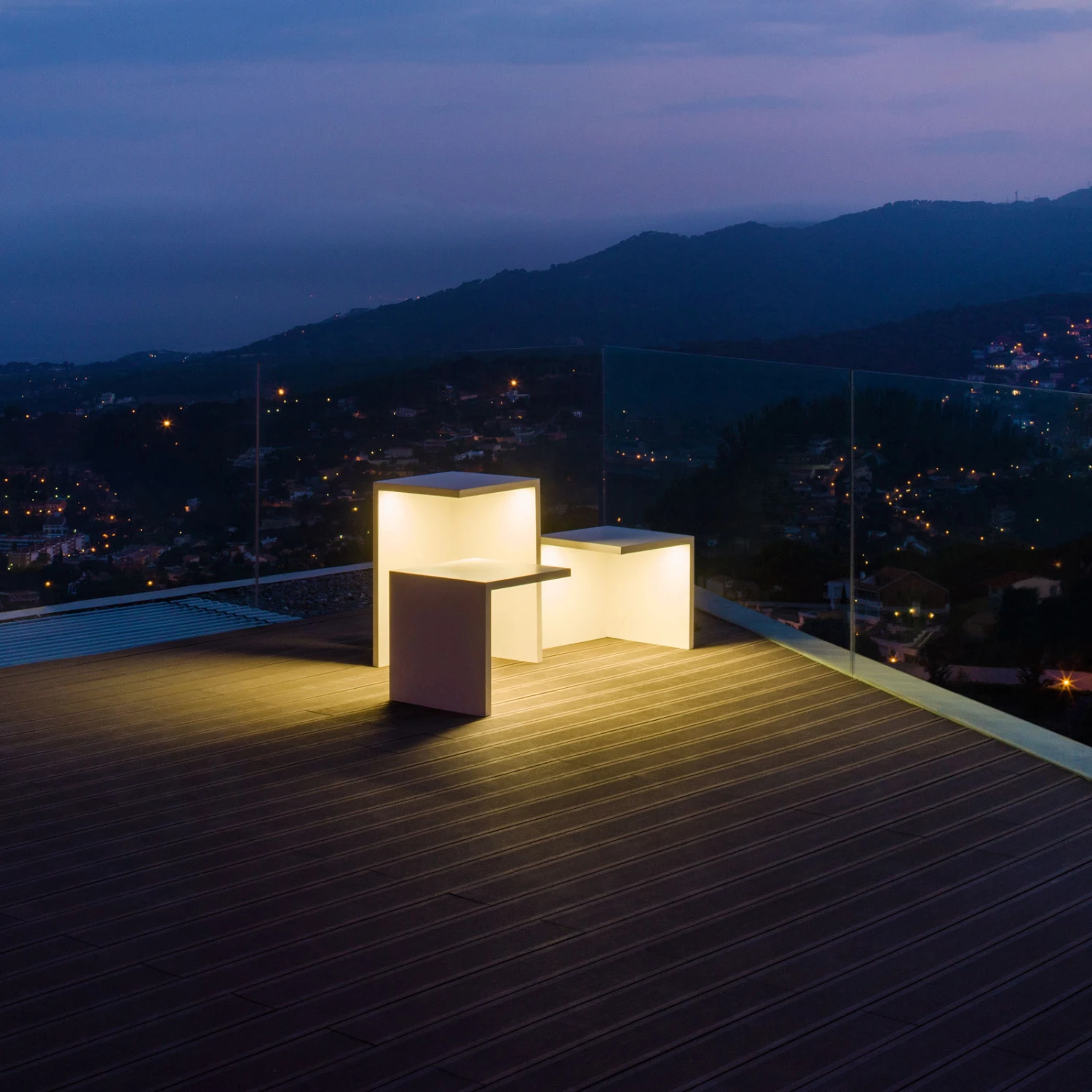 Der Korpus der Leuchte besteht aus Polymerbeton, der einerseits die fest verbaute LED-Technik vor Wind und Wetter schützt und andererseits eine stabile Sitz- bzw. Ablagefläche bietet, denn der Beton ist bis zu 150 kg belastbar. So ist Empty funktional und vom Design her ein absolutes Highlight – tagsüber Sitzgelegenheit und abends erstrahlt sie in einem intensiven Licht.