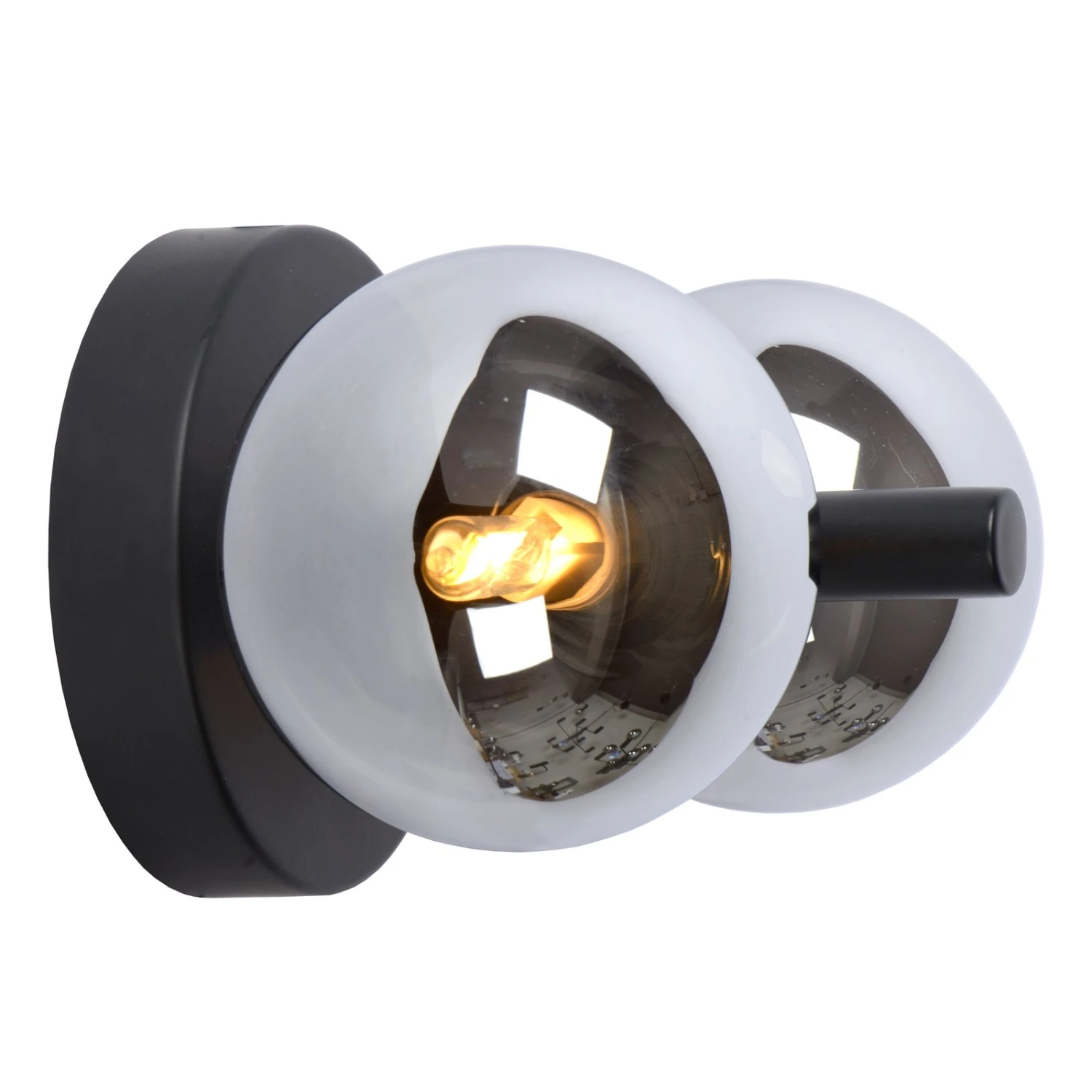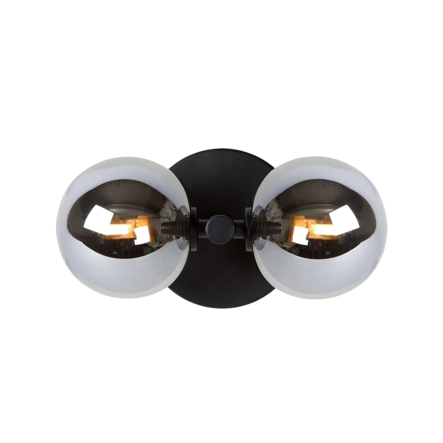 Zweiflammige Wandleuchte Tycho mit Rauchglas-Schirmen
