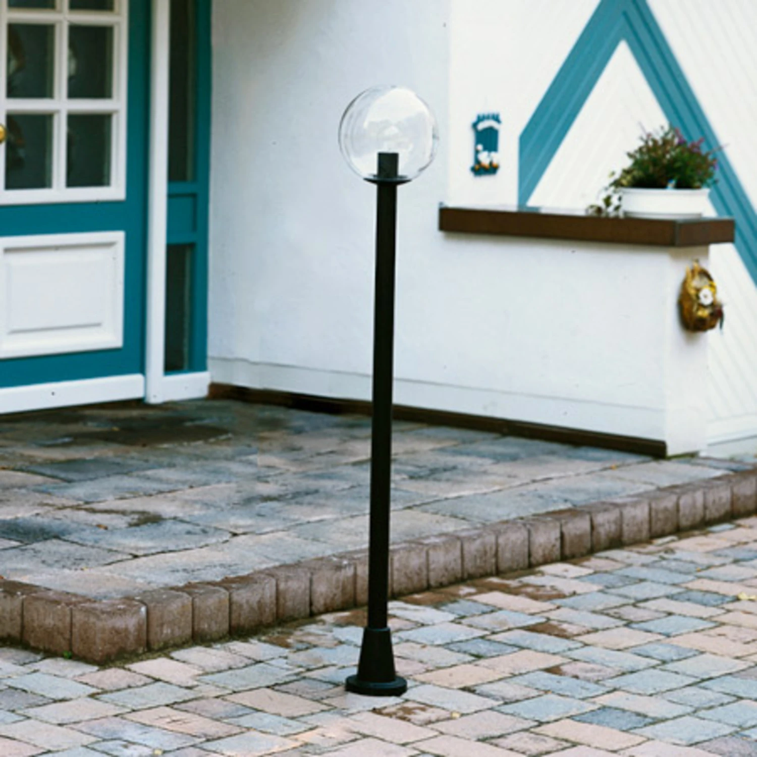In Deutschland gefertigt, überzeugt diese Wegeleuchte durch ihre hochwertige Verarbeitung. Die Kugel, die den Lampenschirm bildet, ist aus Kristallglas gefertigt. Ihr zeitloses Design fügt sich problemlos in zahlreiche Umgebungen ein. So dient die Wegeleuchte zum Beispiel in großen Gärten oder Parks der stilvollen Beleuchtung. Dank der Schutzart IP44 hält sie zahlreichen Witterungsbedingungen stand.