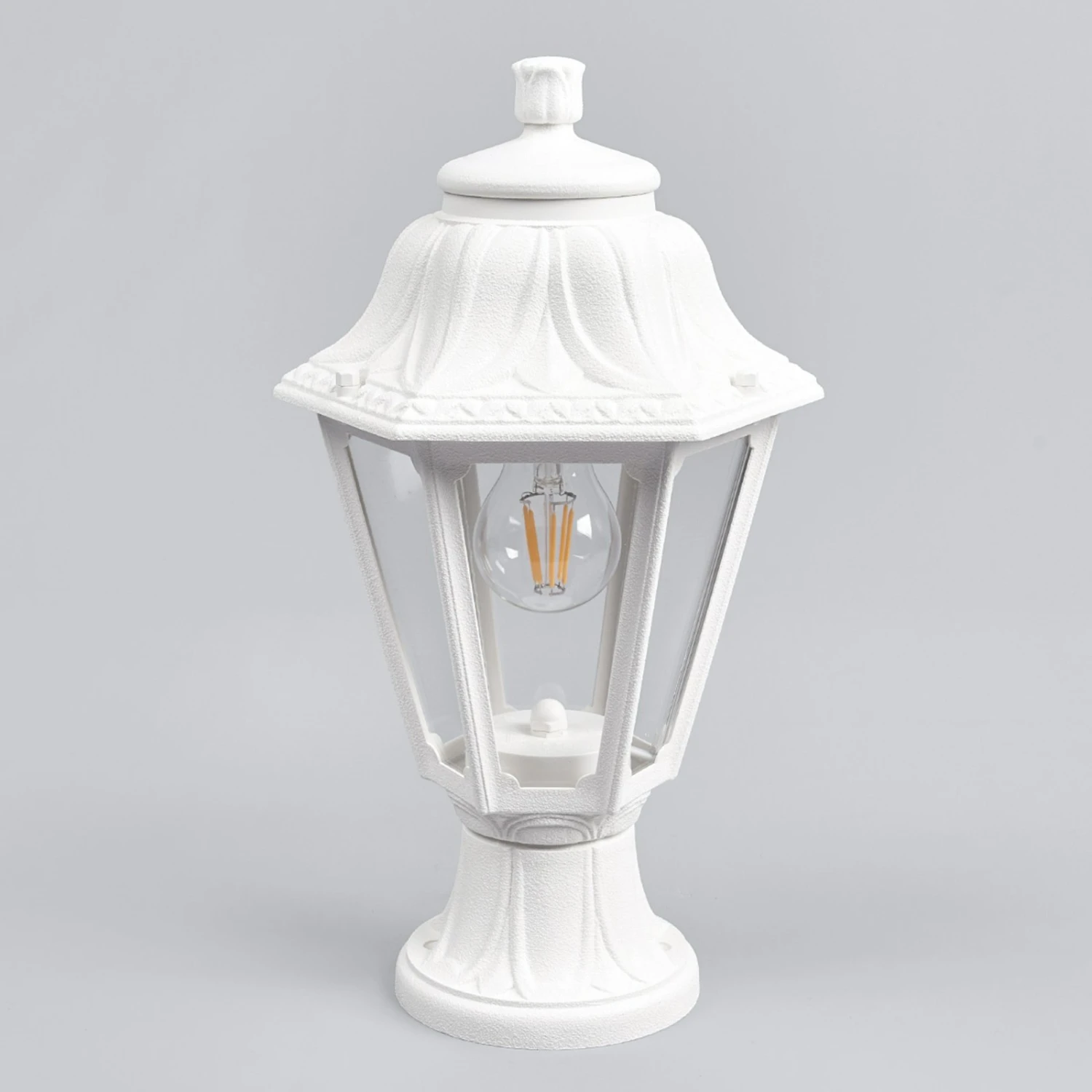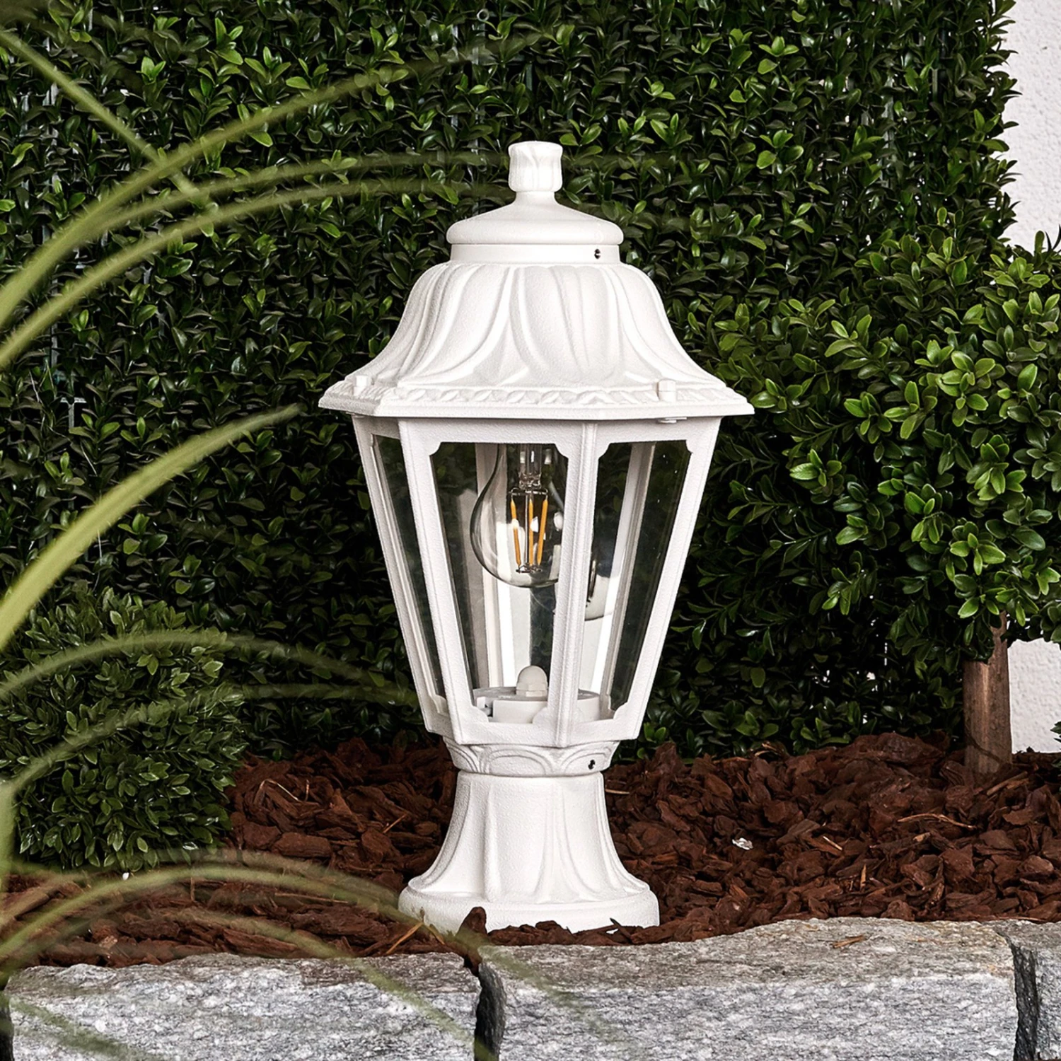 Sie verleiht einem Außengelände im klassischen Stil den letzten Schliff. Die weiße Sockelleuchte Mikrolot Anna in Laternenform setzt als Begrenzungsleuchte Maßstäbe. Ob als leuchtende Eckpfeiler auf der Grundstücksmauer oder als Beetbegrenzung auf dem Gartenweg: Mikrolot Anna schafft in jeder Umgebung mit stimmungsvollem, warmweißem LED-Licht ein behagliches Ambiente. Sie glänzt zudem mit seewasserfester Verarbeitung: Laterne und Fuß bestehen aus stoßfestem, rost- und korrosionsbeständigem Resin. Der Schirm aus PMMA ist klar gehalten, so dass man das Leuchtmittel im Inneren sehen kann. Es handelt sich um ein LED-Filament-Leuchtmittel mit E27-Fassung, das das Aussehen einer herkömmlichen Glühlampe mit innovativer LED-Technik kombiniert. Das Leuchtmittel ist inbegriffen.